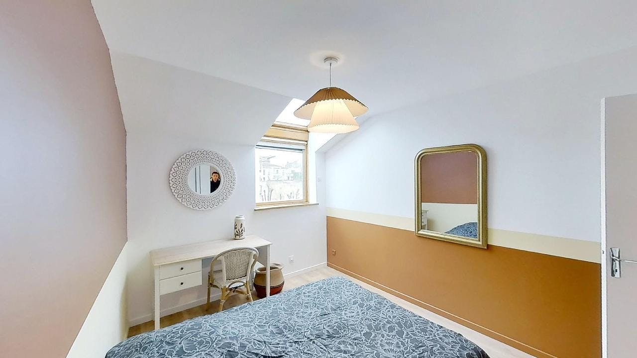 GRAND APPARTEMENT 5 PIÈCES Nous vous présentons à louer au 24 Place Des Vosges dans la commune de Nancy (54000) cette colocation de 4 chambres de 80,59 m2. 🛌LA CHAMBRE La chambre est équipée d'un bureau, d'un canapé, d'un lit, d'une penderie et d'un placard. 🏠LES ESPACES COMMUNS L'appartement est composé : - D'une entrée, distribuant la première des chambres, les WC indépendants ainsi que la pièce de vie. - D'une pièce de vie, équipée d'un coin salon (canapé, fauteuil, table basse et meuble TV), d'un coin repas (table à manger, quatre chaises), ainsi que d'un coin cuisine (réfrigérateur, four à micro-ondes, plaques de cuisson, évier, emplacement pour lave-vaisselle). - D'une première salle de bain, équipée d'une grande douche, d'un meuble vasque et d'un lave-linge. - D'un couloir, distribuant la deuxième salle de bain (douche, meuble vasque, WC), ainsi que les trois dernières chambres et un cagibi. Le chauffage est collectif. Cet appartement est raccordé à la fibre optique, pour une connexion haut débit. Il est situé au 3e étage d'un immeuble. À noter : Depuis la séance photos, un four encastré et des étagères ont été ajoutées. 🪴LES EXTÉRIEURS Cet appartement est loué avec un box. 🏬LE QUARTIER Les environs proposent à moins de 10 minutes à pied neuf structures d'accueil pour les tout-petits ainsi que deux établissements du supérieur à moins de 10 minutes en voiture : l'Université de Lorraine et l'ICN Business School. Niveau transports, il y a 10 lignes de bus ainsi que la ligne de tramway T1 (Garenne) à moins de 10 minutes à pied. Les autoroutes A330, A31 et A33 sont accessibles à moins de 5 km. Pour vos loisirs, vous pourrez compter sur deux cinémas à quelques minutes du bien. On trouve aussi des restaurants, des boulangeries, des commerces, des supermarchés, des boucheries et trois bureaux de poste. 2 marchés animent le quartier. Bail individuel à la chambre. Pas de caution solidaire. Chacun est libre de partir quand il veut sans se soucier des autres colocs, dès le moment où il respecte un mois de préavis. Eligible aux APL. Les informations sur les risques auxquels ce bien est exposé sont disponibles sur le site Géorisques : (hidden) Montant estimé des dépenses annuelles d'énergie pour un usage standard : 1538 € par an. Prix moyens des énergies indexés sur l'année 2021 (abonnements compris...