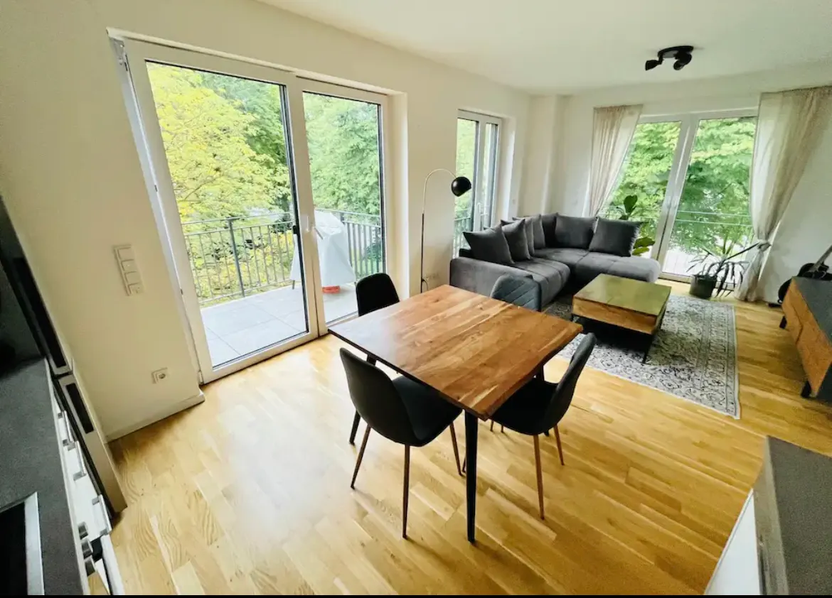 The apartment is on the second floor of a newly built building and is fully furnished. It is located 4 minutes away walking distance from Brunsberg bus station. You can get to the city center in 15 minutes using bus number 5 (Bus 5 comes every 3-5 min and works 24/7) The apartment has 2 bedrooms, 2 bathrooms, including a standing shower and a bathtub, a laundry room, a living room, a kitchen and a big balcony with BBQ equipment. Below you can see the full list of furniture and equipment: Kitchen: - Microwave - Coffee machine(DeLonghi Gran Lattissima Schwarz) - Soda stream - kettle - Mixer - Fridge and Freezer - Stove and oven - Dishwasher - Full set of dishesh, small and big bowls - Full set of cutlery and knives - Big, medium, and small size glasses - Pots and pans - Full set of White, red wine and champaign glasses - Wine wracks (24 bottles) Balcony: - Weber gas grill - Two wooden chairs Livingroom: - L shaped bed couch - Table - Dining table and four chairs - TV bank and TV - PS4 Laundry room: - Wash machine - Dryer - Vacuum cleaner Bedroom 1 - 180*200 box spring bed - 300*236 closet with inside lights - Two nightstands Bedroom 2: - 160*80 height adjustable desk Office chair - Single sofa - White board - Shelf - Side desk drawers - Workout equipment (yoga matt and total of 30kg weights) Entrance: - Coat rack (space for 15 coats) - Mirro...