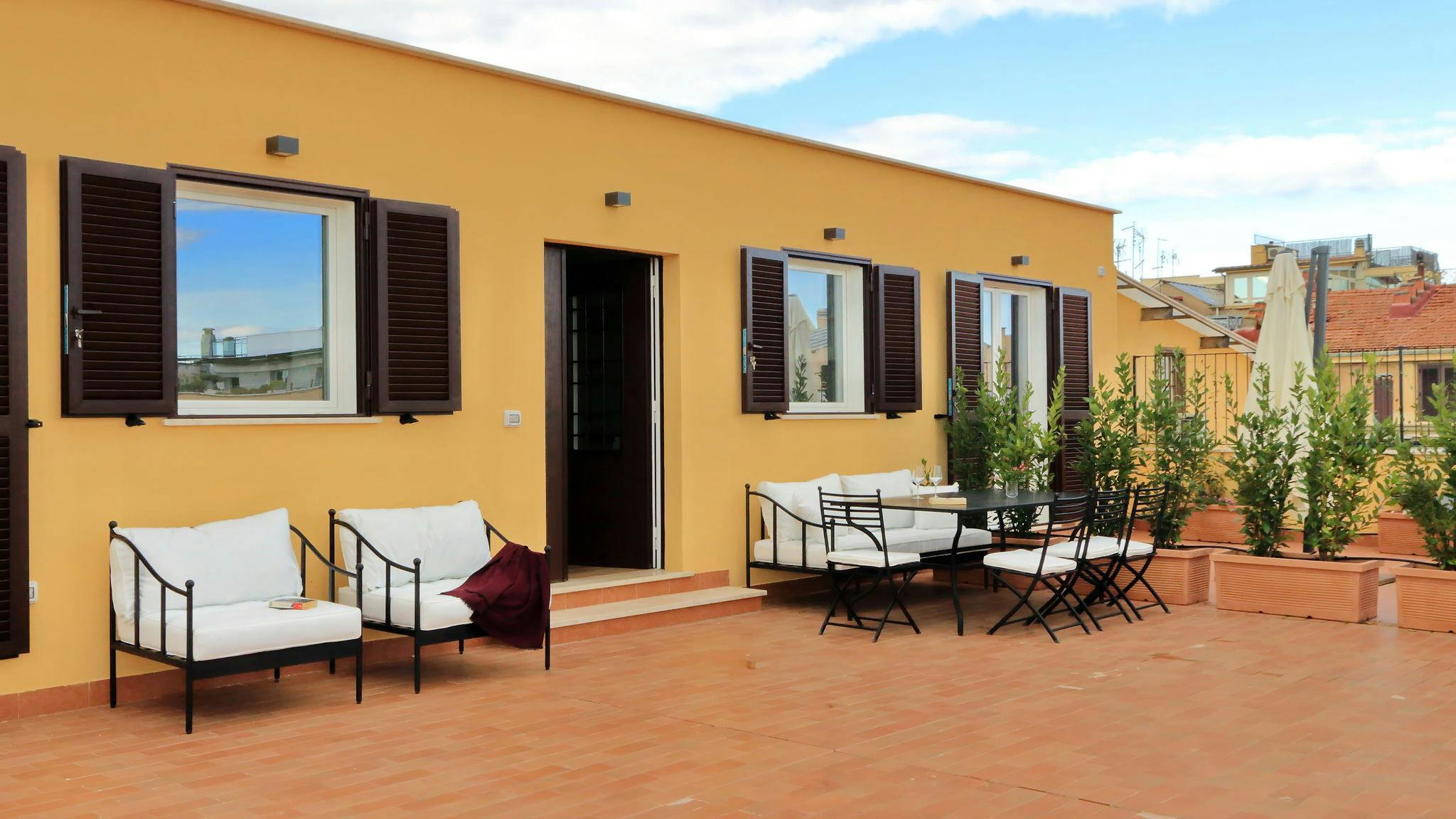 This 80 square meter apartment is located on the fifth floor of an elegant residential building serviced by an elevator. The large and bright spaces make this accommodation particularly welcoming and comfortable for stays in Rome, with its elevated position that guarantees city views and a pleasant feeling of privacy. The structure consists of two bedrooms furnished with taste and functionality, completed by a living room equipped with a double sofa bed that expands the accommodation capacity of the apartment. The fully equipped kitchen has all the essential appliances: oven, dishwasher and fridge with freezer, allowing you to comfortably prepare your meals. The two bathrooms provide privacy and convenience for all guests. A real strength is represented by the terrace, perfect for moments of relaxation in the open air or to enjoy a breakfast with a view of the city. The accommodation is equipped with all modern facilities to ensure maximum comfort during your stay. The air conditioning system ensures the ideal climate in every season, while the heating keeps the rooms always at the perfect temperature. The washing machine in the apartment allows you to manage the laundry independently, making your stay even more practical and independent. RENTAL CONDITION: Rent includes all utilities based on normal use; if you exceed with the usage of gas and electricity, the extras will be deducted from your deposit. Details will be specified in the rental agreement; Internet, wi-fi, water, building expenses and contract registration costs are included in the rental price; Early termination of the contract: after the minimum required stay of one month, you can terminate the contract earlier and without penalties by informing us 21 days before your expected move-out date; We apply a daily contract on 30 days: we calculate the rent in proportion to the number of days of your stay: e.g. December is calculated on 31 days, February on 28 etc etc...; RENTAL AGREEMENT: As per Italian Law, it is mandatory to apply for a valid Italian Tax Code in order to sign the rental agreement. You can apply for one by contacting your local Consulate, or by going to the Agenzia delle Entrate no later than one-week prior check-in. If you can't get one on time a charge will be applied. The rental agreement must be signed prior check-in. Failure to do so will result in the impossibility to enter the apartment. PAYMENTS: In order to complete the booking the following payments must be completed, at least 2 weeks before the check-in date: - the deposit, that we will give you back at the end of your stay within 30 business days after the check-out date; - one-time initial and final cleaning fee (starting from €175) depending on the size of the flat. - for all apartments located in Rome, the cost of the city tax is required at check-in. This is equal to €3,50 per person per night...