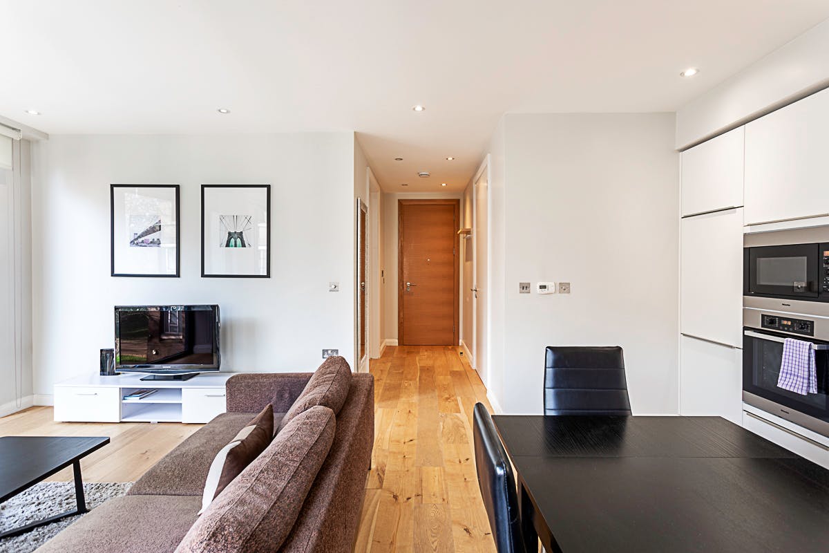 Located on the 2nd floor, this beautiful Central London flat that can comfortably accommodate up to four people. The smoke-free property features a living room, one bedroom, one bathroom, and a modern kitchen. The living room is equipped with a comfortable sofa bed, a dining table, and a Samsung TV with Freeview channels. The kitchen is fully equipped with modern appliances, and includes all cooking utensils that you could need when preparing a quick snack or your evening dinner. The bright bedroom is equipped with a double size bed, and the bathroom equipped with a free standing shower. We offer custom pricing for any duration, with rates varying based on exact move-in and move-out dates. Rates start from 4032...