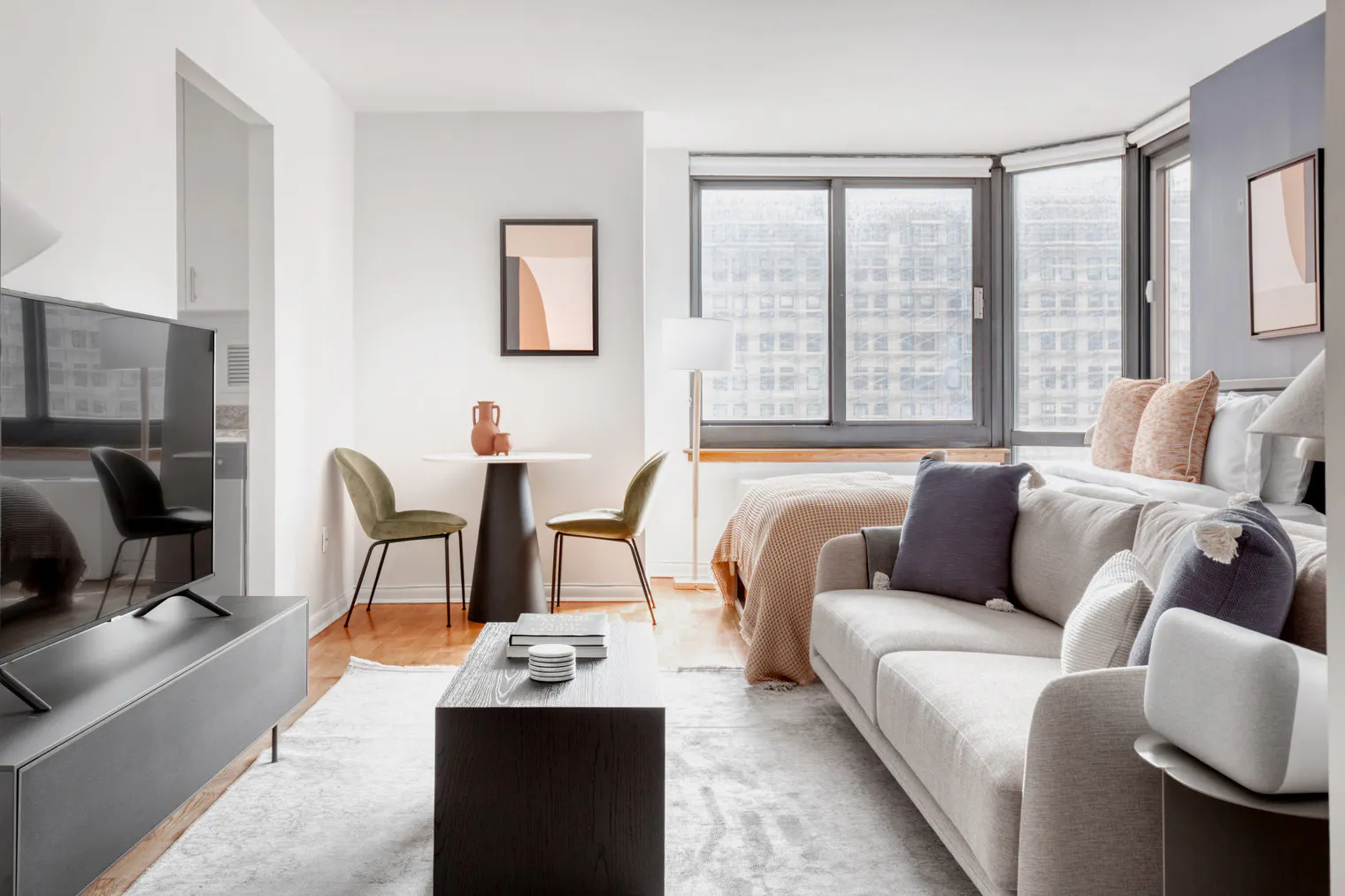 Please, note that the minimum stay for this accommodation is 32 days. You’ll love this charming Tribeca furnished studio apartment with its modern decor, fully equipped kitchen, and beautiful living room with great views. Ideally located, you’re close to all the best that New York has to offer! (ID #NYC153) Designed with you in mind Gorgeous furniture, fully equipped kitchen, smart TV, and a premium wireless speaker are just a few of the amenities you’ll find inside this studio apartment. Ideally located in New York, you’ll find a lot to love outside as well. When you’re ready to relax, you’ll be happy to discover every bedroom comes with superior quality mattresses. We handle everything so you can simply show up and start living. Sleeping arrangements Queen Bed, 63in/160cm Amenities Building amenities unique to this studio apartment include an on-site: - BBQ Area - Doorman - Dryer in building - Elevator - Swimming pool - Washing machine in building - Lounge - Pets allowed Arrival and ongoing support Full Maintenance and Technical Support / cleaning requests at a click of a button. Ideally Located This furnished apartment is in the vibrant neighborhood of Tribeca. Formerly an industrial center, nowadays it is considered an artists' mecca, and one of the most exclusive neighborhoods in the city. The award-winning public and private schools draw families to nest nearby. Locals can be seen strolling along the Hudson River or dining at a wine bar. Quaint cafes and inviting green park space make this a great place to call home. Tribeca is one of the more well-rounded and well-connected neighborhoods in Lower Manhattan. By subway, the Financial District is only 10 minutes away. Other things to note Building amenities may have an extra cost. This apartment has flexible lease options, allowing you to book it for one month, a year, or more. Pets are welcome, though weight limits and breed restrictions apply and may incur fees. Completion of the Background check via a link is mandatory after the booking confirmation. All occupants, and anyone booking on an occupant's behalf, will be subject to a background check, which will include a criminal and credit history to the extent permitted by law. United States citizens, U.S. permanent residents, and non U.S. citizens with work visas must provide a social security number to complete the background check. Should guests not meet requirements or decide not to complete these screenings, the reservation must be cancelled by guests. In case of students, proof of University enrollment and a parents screening are mandatory for the confirmation of a booking...