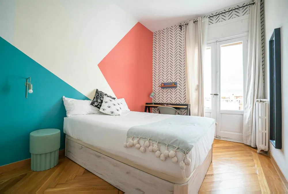 HABITACIÓN CON CAMA DE MATRIMONIO Y BALCÓN La habitación cuenta con cama matrimonio, zona de escritorio, armario y balcón. El apartamento cuenta con cocina completamente equipada, 2 baños y 1 aseo compartidos por un máximo de 10 personas. Nuestro coliving está enfocado a estudiantes y jóvenes profesionales, generalmente entre 18 y 40 años, y ambiente internacional. Buscamos que disfrutes de Madrid y que tu estancia sea cómoda, por ello te ofrecemos amplias zonas comunes y además nuestros asesores te ayudaran ante cualquier duda. Al hacer tu reserva queremos que disfrutes con nosotros, estés cómodo y cuentes con nuestro equipo y comunidad, por ello no solo te ofrecemos un alquiler, sino que alojándote con nosotros: • Formarás parte de nuestra comunidad, teniendo acceso a eventos y actividades semanales para que descubras Madrid y te sientas como en casa siendo uno más. • Disfrutaras de la terraza al aire libre • Limpieza semanal de las zonas comunes • Servicio de mantenimiento • Posibilidad de empadronamiento (City registration) para estancias a partir de 6 meses • Servicio Medico 24/7 por Quirón Salud • Atención al cliente 24/7 a través de nuestro departamento de Atención al coliver • Invitación a eventos y actividades especiales • Ropa de cama y toallas • Suministros incluidos en el precio como electricidad, agua, calefacción y internet de alta velocidad (hasta un máximo de 70€ ) Condiciones: • Un mes de Fianza • Member Live it Club - Pertenencia al programa de fidelización de la empresa (Descuentos en Service apartments, Hoteles, Hostales) para amigos y Familiares - Descuentos en empresas de proximidad (Gimnasios, supermercados, bares...) - Invitación VIP a las fiestas y eventos organizadas por nosotros • Consultar estancia mínima • De documentación únicamente solicitamos DNI o pasaporte Nuestro coliving está enfocado a estudiantes y jóvenes profesionales que quieren disfrutar de una estancia en Madrid. La ubicación es inmejorable cerca del metro Iglesia y Alonso Martínez, rodeado de restaurantes, cafés y tiendas. 💵 Payments before the check-in: Once the reservation is confirmed, you will be required to make the additional payments (security deposit, etc.) through our secure payment system before the move-in date...
