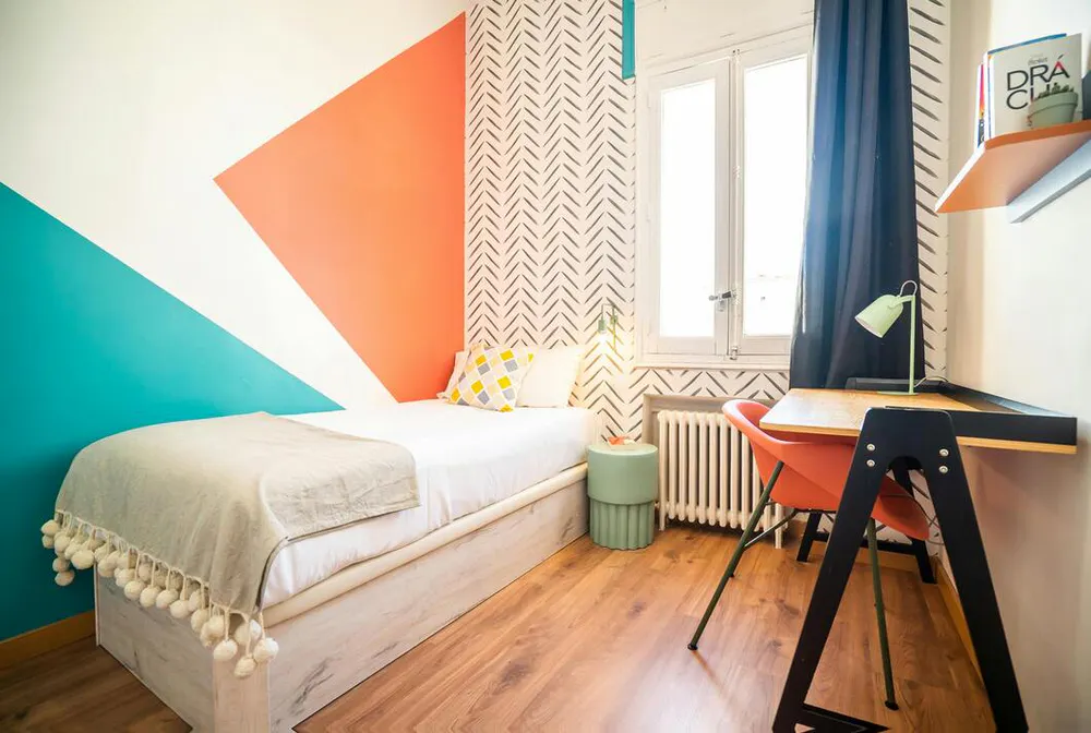 HABITACIÓN CON CAMA DE MATRIMONIO La habitación cuenta con cama matrimonio, zona de escritorio, armario. El apartamento cuenta con cocina completamente equipada, 2 baños y 1 aseo compartidos por un máximo de 10 personas. Nuestro coliving está enfocado a estudiantes y jóvenes profesionales, generalmente entre 18 y 40 años, y ambiente internacional. Buscamos que disfrutes de Madrid y que tu estancia sea cómoda, por ello te ofrecemos amplias zonas comunes y además nuestros asesores te ayudaran ante cualquier duda. Al hacer tu reserva queremos que disfrutes con nosotros, estés cómodo y cuentes con nuestro equipo y comunidad, por ello no solo te ofrecemos un alquiler, sino que alojándote con nosotros: • Formarás parte de nuestra comunidad, teniendo acceso a eventos y actividades semanales para que descubras Madrid y te sientas como en casa siendo uno más. • Disfrutaras de la terraza al aire libre • Limpieza semanal de las zonas comunes • Servicio de mantenimiento • Posibilidad de empadronamiento (City registration) para estancias a partir de 6 meses • Servicio Medico 24/7 por Quirón Salud • Atención al cliente 24/7 a través de nuestro departamento de Atención al coliver • Invitación a eventos y actividades especiales • Ropa de cama y toallas • Suministros incluidos en el precio como electricidad, agua, calefacción y internet de alta velocidad (hasta un máximo de 70€ ) Condiciones: • Un mes de Fianza • Member Live it Club - Pertenencia al programa de fidelización de la empresa (Descuentos en Service apartments, Hoteles, Hostales) para amigos y Familiares - Descuentos en empresas de proximidad (Gimnasios, supermercados, bares...) - Invitación VIP a las fiestas y eventos organizadas por nosotros • Consultar estancia mínima • De documentación únicamente solicitamos DNI o pasaporte Nuestro coliving está enfocado a estudiantes y jóvenes profesionales que quieren disfrutar de una estancia en Madrid. La ubicación es inmejorable cerca del metro Iglesia y Alonso Martínez, rodeado de restaurantes, cafés y tiendas. 💵 Payments before the check-in: Once the reservation is confirmed, you will be required to make the additional payments (security deposit, etc.) through our secure payment system before the move-in date...
