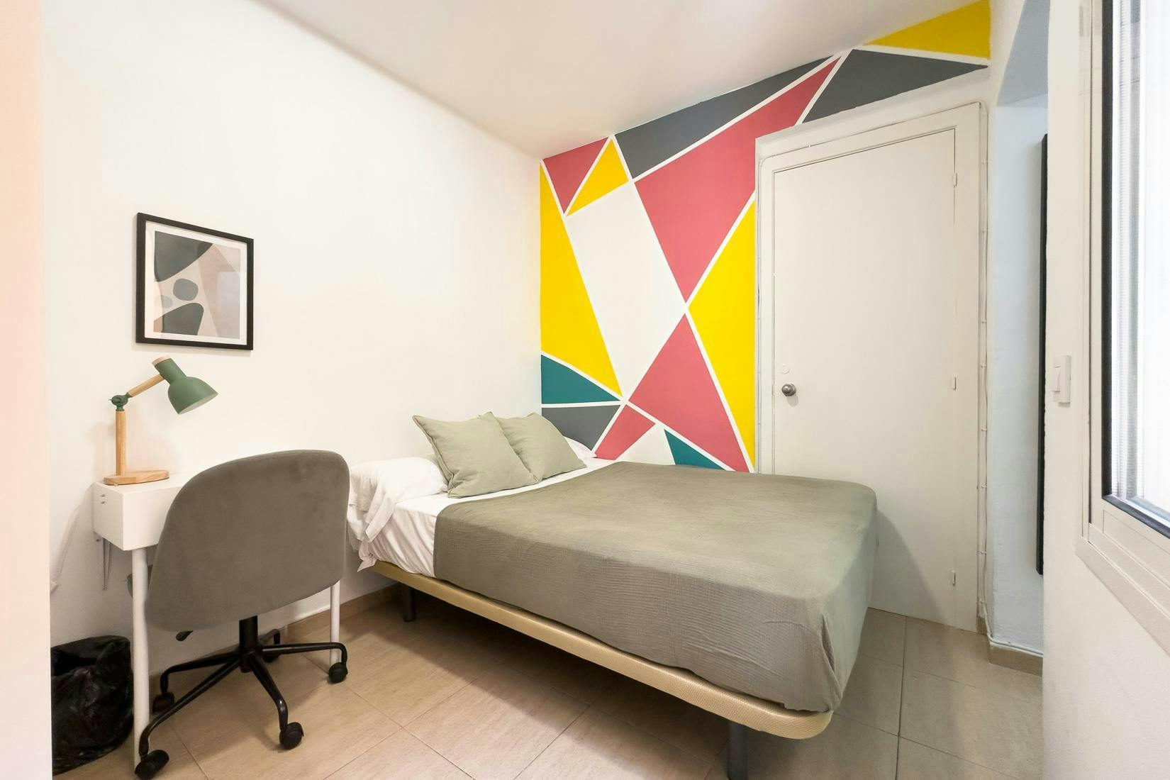 HABITACIÓN CON CAMA DE MATRIMONIO La habitación cuenta con cama matrimonio, zona de escritorio, armario. El apartamento cuenta con cocina completamente equipada y 2 baños compartidos por un máximo de 6 personas. Nuestro coliving está enfocado a estudiantes y jóvenes profesionales, generalmente entre 18 y 40 años, y ambiente internacional. Buscamos que disfrutes de Barcelona y que tu estancia sea cómoda, por ello te ofrecemos amplias zonas comunes y además nuestros asesores te ayudaran ante cualquier duda. Al hacer tu reserva queremos que disfrutes con nosotros, estés cómodo y cuentes con nuestro equipo y comunidad, por ello no solo te ofrecemos un alquiler, sino que alojándote con nosotros: • Formarás parte de nuestra comunidad, teniendo acceso a eventos y actividades semanales para que descubras Barcelona y te sientas como en casa siendo uno más. • Disfrutaras de las zonas comunes: coworking, terraza en la azotea y gimnasio al aire libre • Limpieza semanal de las zonas comunes • Servicio de mantenimiento • Posibilidad de empadronamiento (City registration) para estancias a partir de 6 meses • Servicio Medico 24/7 por Quirón Salud • Atención al cliente 24/7 a través de nuestro departamento de Atención al coliver • Invitación a eventos y actividades especiales • Suministros incluidos en el precio como electricidad, agua, calefacción y internet de alta velocidad (hasta un máximo de 70€ ) Condiciones: • Un mes de Fianza - Pertenencia al programa de fidelización de la empresa(Descuentos en Service apartments, Hoteles, Hostales) para amigos y Familiares - Descuentos en empresas de proximidad (Gimnasios, supermercados, bares...) - Invitación VIP a las fiestas y eventos organizadas por nosotros • Consultar estancia mínima • De documentación únicamente solicitamos DNI o pasaporte Nuestro coliving está enfocado a estudiantes y jóvenes profesionales que quieren disfrutar de una estancia en Barcelona. La ubicación es inmejorable al lado del metro Liceu y rodeado de restaurantes, cafés y tiendas. 📅 CONTRATO QUINCENAL En el mes de entrada o de salida: - Si te quedas 14 días o menos, pagarás la mitad del alquiler de ese mes. - Si te quedas más de 14 días, pagarás el alquiler del mes completo. (El importe a pagar de cada mes aparece calculado en el resumen de pagos) 💵 Payments before the check-in: Once the reservation is confirmed, you will be required to make the additional payments (security deposit, etc.) through our secure payment system before the move-in date...