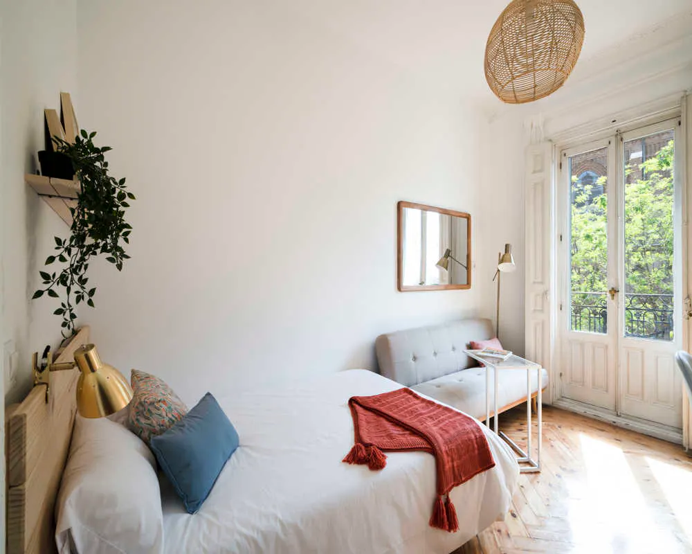 Located in *Chamberí/Trafalgar/Almagro/Vallehermoso* , this bright, well-located room offers easy access to the city's best cafés and transport links — perfect for city life. The room is a comfortable 18.4 m2 space with balcony access and a queen size bed. The apartment includes 4 bathrooms, a washing machine, oven, microwave and Wi‐Fi to keep your day-to-day running smoothly. The building features an elevator for added convenience. Ideal for students or young professionals seeking a spacious room in a shared 8-room flat with generous communal areas. Limited rooms available — enquire today! Current tenants: 5: 45, Female, Worker 6: 24, Male, Student 7: 24, Male, Worker 8: 24, Female, Student Please be aware that HousingAnywhere is an online booking platform. Therefore exchanging contact details and offering viewings is not possible. If you would like to reserve this accommodation, send me a booking request or a message and please mention your age and occupation. I look forward to talking to you! CONTRACT Please, note that to all our listings we apply fortnightly contracts. This means that If you check-in during the first half of the month, you will be charged for the full month. If you check-in during the second half of the month, you will only be charged for the second half. The second half of the month starts on the 16th. If you check-out during the first half of the month, you will only pay until the 15th of that month. If you check-out during the second half of the month, you will be charged the full month. Tenants can establish legal residency using the accommodation's address....