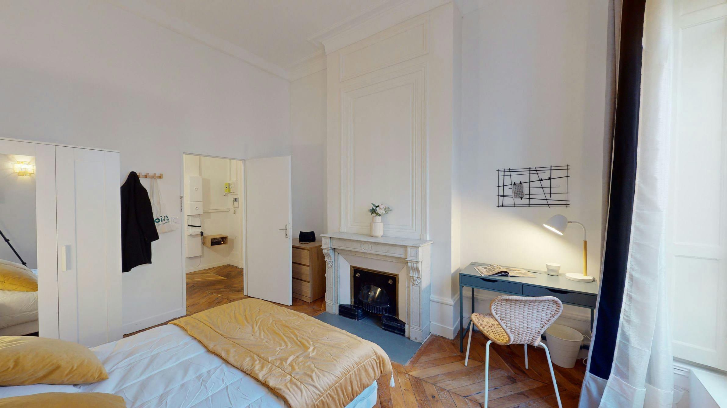 Furnished flat share ! All our flats are located in the city centre and close to all amenities and public transport (Metro, Tramway and Bus). This lovely private bedroom in a fully equipped, furnished and all-inclusive flatshare in Lyon is a mix of comfort and design. It has got household furnishings, including a bed with pillows and duvet What is missing is your things to feel at home! The room can be locked if you need intimacy. All our rooms are fully furnished (bed, desk, wardrobe, duvet, pillows...). The flatshare can be found in the Cordeliers neighborhood, in the heart of Lyon. Plenty of shops, public transports, restaurants are accessible close by. The apartment is on floor 2 with lift. It is entirely equipped and is composed of a large kitchen with refrigerator, microwave, pans, crockery, kitchen ustensils, kettle... The accommodation also contains an ironing board, a washing machine, a clothes rack, an iron. Additionally, you will find cleaning items in the accommodation: bagless hoover, dustpan and brush, broom, mop and bucket... Every Joivy furnished flatshare includes all expenses: housing insurance, water, electricity, unlimited wi-fi, condominium fees, household waste tax. All our flats are fully equipped (washing machine, dishes, decoration...) by our teams, who also take care of the technical and material maintenance. The Cordeliers district is one of the most central places to live in Lyon. This neighbourhood is ideally located between the “Place des Terreaux” and “Place Bellecour”, and between the Saône and Rhône rivers. This area gets its name from the Cordeliers priesthood, at the time you could recognise the priests thanks to the cords worn around their waists. Cordeliers is surrounded by many of Lyons emblematic buildings, most notably the Palais de la Bourse which is now known as the Chamber of Commerce and Industry, you will also notice the Saint Nizier church, a wonderful construction typical of gothic architecture. The “Presqu’île” district is the most sought after areas to live in Lyon, and is easily the liveliest neighbourhoods: here you can shop, dine to your heart's content! Here you will also be able to pass through the Presqu’île thanks to Rue de la République, one of the vibrant streets in town. With cobbled streets, hidden terasses, high-end boutiques, and Lyonnais bouchons, Cordeliers unifies all aspects for you to have the best stay! The district also has great transport links: metro, bus, velov etc Minimum stay : 1 mois Apartment eligible for CAF up to 258€ / month. The CAF for Caisse d'allocations familiales is a free public service eligible for all, including foreigners and can help you financially to pay part of your housing according to your situation whether you are French or foreign. To find out the potential amount of your assistance, go to the CAF website and complete the online APL (housing assistance) estimate. Service fee : from 490€ The service fee covers the writing of the lease but also the assistance throughout your stay. The service fee covers the repair and maintenance of the equipment as well as access to our ultra-reactive support in case of need for intervention in your accommodation. Deposit : 900...