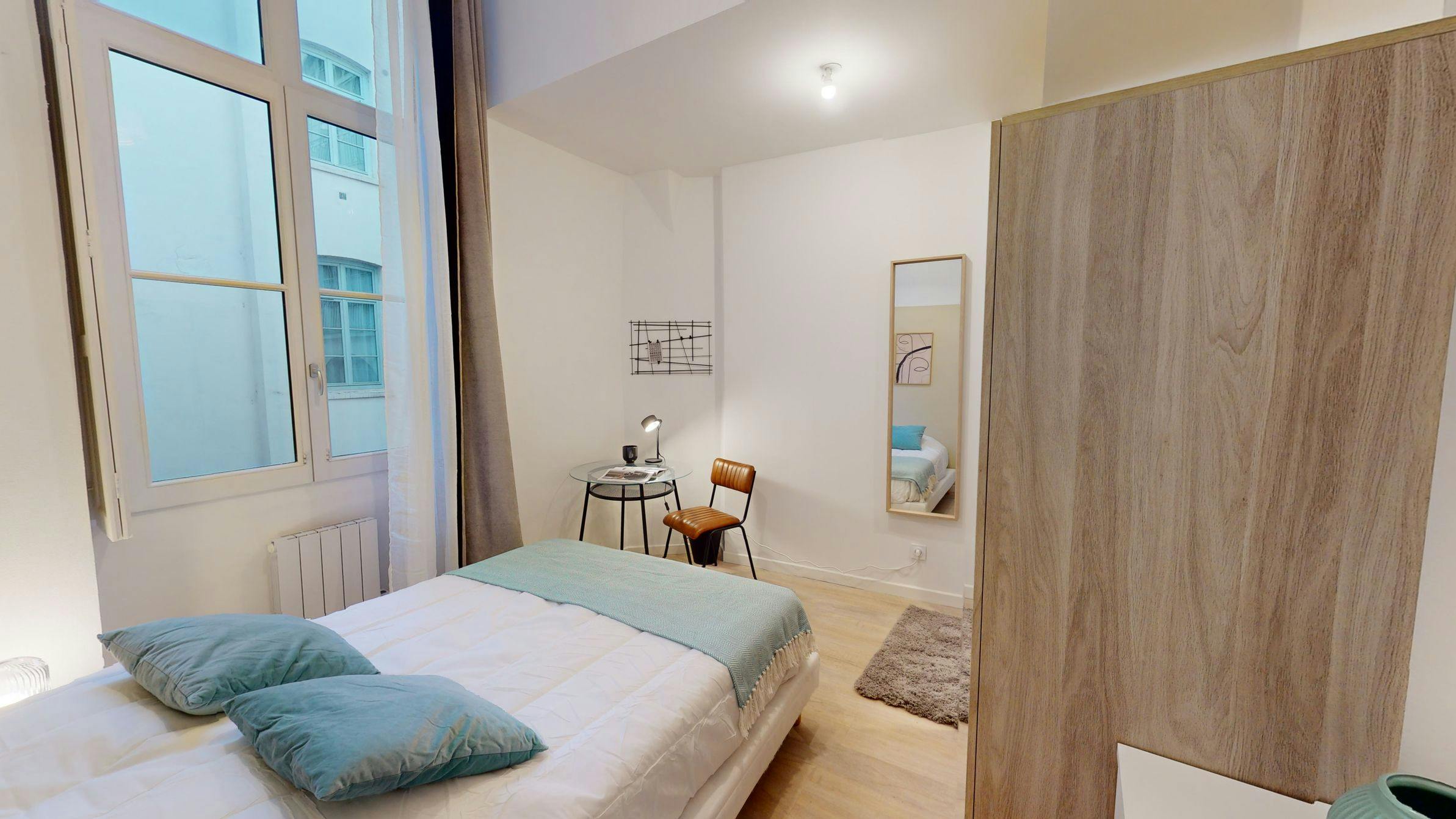 Furnished flat share ! All our flats are located in the city centre and close to all amenities and public transport (Metro, Tramway and Bus). This lovely private bedroom in a fully equipped, furnished and all-inclusive flatshare in Lyon is a mix of comfort and design. It has got household furnishings, including a bed with pillows and duvet What is missing is your things to feel at home! The room can be locked if you need intimacy. All our rooms are fully furnished (bed, desk, wardrobe, duvet, pillows...). The flatshare can be found in the Cordeliers neighborhood, in the heart of Lyon. Plenty of shops, public transports, restaurants are accessible close by. The apartment is on floor 2 with lift. It is entirely equipped and is composed of a large kitchen with refrigerator, microwave, pans, crockery, kitchen ustensils, kettle... The accommodation also contains an ironing board, a washing machine, a clothes rack, an iron. Additionally, you will find cleaning items in the accommodation: bagless hoover, dustpan and brush, broom, mop and bucket... Every Joivy furnished flatshare includes all expenses: housing insurance, water, electricity, unlimited wi-fi, condominium fees, household waste tax. All our flats are fully equipped (washing machine, dishes, decoration...) by our teams, who also take care of the technical and material maintenance. The Cordeliers district is one of the most central places to live in Lyon. This neighbourhood is ideally located between the “Place des Terreaux” and “Place Bellecour”, and between the Saône and Rhône rivers. This area gets its name from the Cordeliers priesthood, at the time you could recognise the priests thanks to the cords worn around their waists. Cordeliers is surrounded by many of Lyons emblematic buildings, most notably the Palais de la Bourse which is now known as the Chamber of Commerce and Industry, you will also notice the Saint Nizier church, a wonderful construction typical of gothic architecture. The “Presqu’île” district is the most sought after areas to live in Lyon, and is easily the liveliest neighbourhoods: here you can shop, dine to your heart's content! Here you will also be able to pass through the Presqu’île thanks to Rue de la République, one of the vibrant streets in town. With cobbled streets, hidden terasses, high-end boutiques, and Lyonnais bouchons, Cordeliers unifies all aspects for you to have the best stay! The district also has great transport links: metro, bus, velov etc Minimum stay : 1 mois Apartment eligible for CAF up to 258€ / month. The CAF for Caisse d'allocations familiales is a free public service eligible for all, including foreigners and can help you financially to pay part of your housing according to your situation whether you are French or foreign. To find out the potential amount of your assistance, go to the CAF website and complete the online APL (housing assistance) estimate. Service fee : from 790€ The service fee covers the writing of the lease but also the assistance throughout your stay. The service fee covers the repair and maintenance of the equipment as well as access to our ultra-reactive support in case of need for intervention in your accommodation. Deposit : 900...