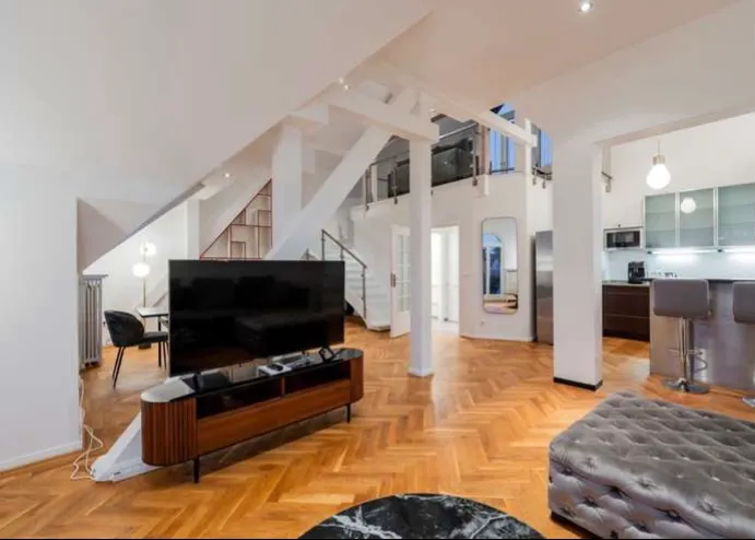 Entire apartment Welcome to your dream living space at Habelschwerdter Allee, Berlin – a prestigious Maisonette loft nestled in the attic of an exclusive villa, meticulously curated and super luxuriously furnished by an acclaimed interior designer. Property Highlights: 1. Location: Situated in the highly sought-after Habelschwerdter Allee, this residence places you in the heart of Berlin's vibrant scene. Enjoy the perfect blend of tranquility and urban living, with convenient access to local amenities, cultural attractions, and public transport. 2. Maisonette Loft: Elegance meets modernity in this thoughtfully designed Maisonette loft with 6,5m ceiling height! The unique layout of this residence spans across the attic, offering a spacious and open floor plan. Vaulted ceilings and large windows flood the space with natural light, creating an inviting and airy atmosphere. Start your morning with yoga on the secluded roof terrace and then enjoy an espresso on the additional balcony! 3. Exclusive Villa: This loft is part of an exclusive villa, ensuring a premium living experience. The villa is characterized by its architectural finesse, showcasing a perfect blend of classic and contemporary design elements. Residents enjoy the privilege of residing in a property with a distinct character and a touch of sophistication. 4. Luxurious Furnishings: Indulge in the epitome of luxury with handpicked furnishings by a renowned interior designer. Every detail, from bespoke furniture to exquisite décor elements, has been carefully selected to create an ambiance of opulence and refinement. 5. Modern Amenities: The Maisonette loft comes equipped with top-notch modern amenities to enhance your lifestyle. From a gourmet kitchen with state-of-the-art appliances to luxurious bathroom fixtures, every detail has been curated to meet the highest standards of comfort and convenience. 6. Private Terrace: Step outside onto your private terrace and soak in panoramic views of the surrounding neighborhood. Whether it's morning coffee or an evening soiree, this outdoor space is perfect for relaxation and entertainment. 7. Spacious Bedrooms: The loft features generously sized bedrooms, each designed to provide a peaceful retreat. Ample storage space and high-quality finishes add to the overall sense of luxury. Don't miss the opportunity to call this Maisonette loft in Habelschwerdter Allee 14 home. Experience the epitome of sophisticated urban living in one of Berlin's most exclusive addresses, where every corner reflects the artistic touch of a masterful interior designer. Schedule a viewing today and make this make this unparalleled residence yours...