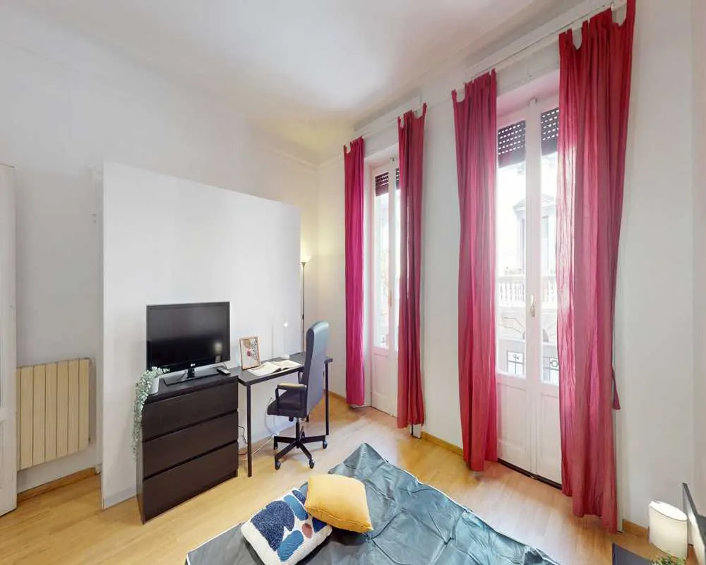 Single room in a shared apartment, composed by 6 bedrooms and 2 bathrooms. Of about 20 sqm with a one and a half bed and a work station. With wifi, dishwasher, washing machine. Energy class: G, IPE 160.98 Kwh/Sqm year. Current tenants: 1: 29, Male, Student 2: 22, Male, Student 3: 23, Female, Student 4: 20, Female, Student 5: 22, Male, Student Please be aware that HousingAnywhere is an online booking platform. Therefore exchanging contact details and offering viewings is not possible. If you would like to reserve this accommodation, send me a booking request or a message and please mention your age and occupation. I look forward to talking to you! CONTRACT Please, note that to all our listings we apply fortnightly contracts. This means that If you check-in during the first half of the month, you will be charged for the full month. If you check-in during the second half of the month, you will only be charged for the second half. The second half of the month starts on the 16th. If you check-out during the first half of the month, you will only pay until the 15th of that month. If you check-out during the second half of the month, you will be charged the full month....