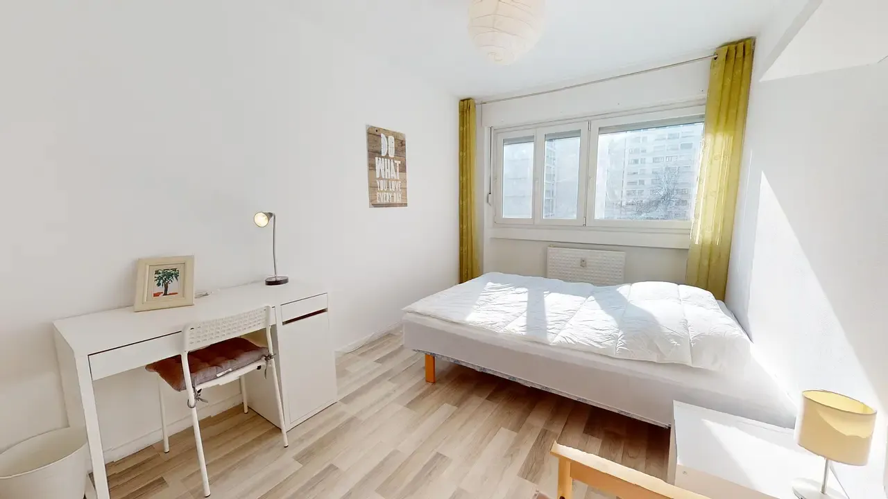 Nous sommes ravis de vous proposer en location au 22 Rue Du Lieutenant-Colonel Girard dans la commune de Lyon (69007) cette colocation de 3 chambres de 64 m2. 🛌 LA CHAMBRE Cette chambre lumineuse s'équipe avec lit double, placard de rangements, table de chevet et lampe, bureau et fauteuil. 🏠 LES ESPACES COMMUNS Son intérieur inclut trois chambres, une cuisine avec un four, un lave-vaisselle, un micro-ondes ainsi qu'une plaque de cuisson et une salle de bains équipée d'une baignoire ainsi que d'un meuble vasque. Le chauffage est collectif. La fibre est disponible dans cet appartement de 3 pièces. Il est situé au premier étage d'un immeuble avec ascenseur. 🪴LES EXTÉRIEURS Un local à vélos est disponible dans le bâtiment. 🏙️ LE QUARTIER Cinq crèches se trouvent à moins de 10 minutes à pied ainsi qu'un établissement du supérieur à quelques pas du bien : l'école École normale supérieure de Lyon. Niveau transports en commun, il y a sept lignes de bus, la ligne de métro B (Place Jean Jaurès) ainsi que les lignes T1 et T6 du tramway. Quatre autoroutes sont accessibles à moins de 8 km. Vous trouverez le cinéma Ugc Cine Cite Confluence à moins de 10 minutes à pied. On trouve aussi des restaurants, des supermarchés, des commerces, des boulangeries, trois supérettes et des épiceries. -------- Bail individuel à la chambre. Pas de caution solidaire. Chacun est libre de partir quand il veut sans se soucier des autres colocs, dès le moment où il respecte un mois de préavis. Eligible aux APL. Les informations sur les risques auxquels ce bien est exposé sont disponibles sur le site Géorisques : (hidden) Montant estimé des dépenses annuelles d'énergie pour un usage standard : 1923 € par an. Prix moyens des énergies indexés sur l'année 2021,2022,2023 (abonnements compris...