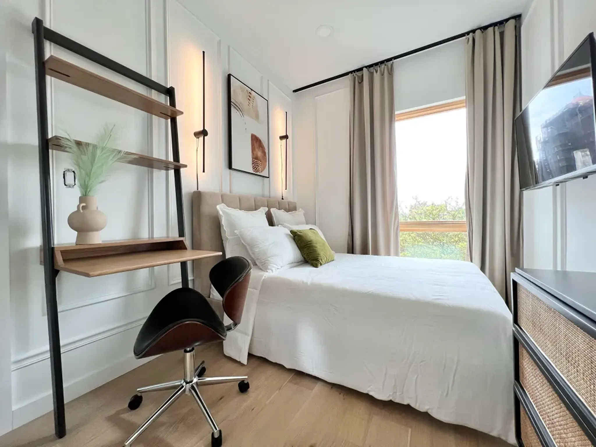 Winthrop St – #334 w/ terrace + rooftop + basement - 100 sq ft Furnished room with FLOOR TO CEILING WINDOWS, large closet, tons of natural light, washer/dryer downstairs. 4 Bathrooms (two of the bathrooms are private, one on each floor). - Duplex apartment, 7 bedrooms and 4 bathrooms. This room is upstairs in the apartment, together with 3 other rooms and one shared bathroom. Downstairs there are 3 bedrooms and one shared bathroom. - Amenities include: movie theater, washer/dryer, rooftop, 2nd floor terrace, 1st floor back-yard, co-working area - Brand new building in Prospect Lefferts, Brooklyn. - 2 Minutes away from 2, 5 train and 15 minutes to Q, B, S train. 23 minutes from Manhattan. 4 blocks from Prospect Park. - Bedroom furniture includes: dresser, HD TV, bed, mattress, desk, chair, curtains, art, wall lamps - Winthrop st between Nostrand Avenue and New York Avenue, Brooklyn. - One person for the room, young professional. Current roommates are between 24 - 32 years old - Utilities: $165 per month (internet, gas, heat, hot water) - Cleaning service $30 per month. - Preparation fee: $175 (One-time: inspection, cleaning and admin cost...