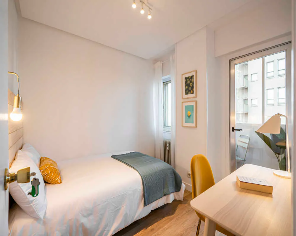 Located in *Ciudad universitaria/Moncloa* , this bright room sits in a lively student area close to campus and transport links. The room is a queen size space of 10.93 m2 with access to a shared *terrace*. The apartment offers multiple conveniences including *Wi-Fi* , an *oven* , *microwave* , *dishwasher* , *washing machine* and a *clothes dryer*. There are 7 bathrooms across the flat, which totals 550 m2 and includes 16 beds in 16 rooms. The building features an *elevator* , *common laundry* , a *kitchen bar* , a *study/coworking* area and a *living room* for socialising. Perfect for students and young professionals looking for a furnished, well-equipped base near university facilities and local amenities. Limited rooms available — enquire today. Current tenants: 1: 26, Female, Student 10: 20, Female, Student 15: 18, Male, Student Please be aware that HousingAnywhere is an online booking platform. Therefore exchanging contact details and offering viewings is not possible. If you would like to reserve this accommodation, send me a booking request or a message and please mention your age and occupation. I look forward to talking to you! CONTRACT Please, note that to all our listings we apply fortnightly contracts. This means that If you check-in during the first half of the month, you will be charged for the full month. If you check-in during the second half of the month, you will only be charged for the second half. The second half of the month starts on the 16th. If you check-out during the first half of the month, you will only pay until the 15th of that month. If you check-out during the second half of the month, you will be charged the full month. Tenants can establish legal residency using the accommodation's address....