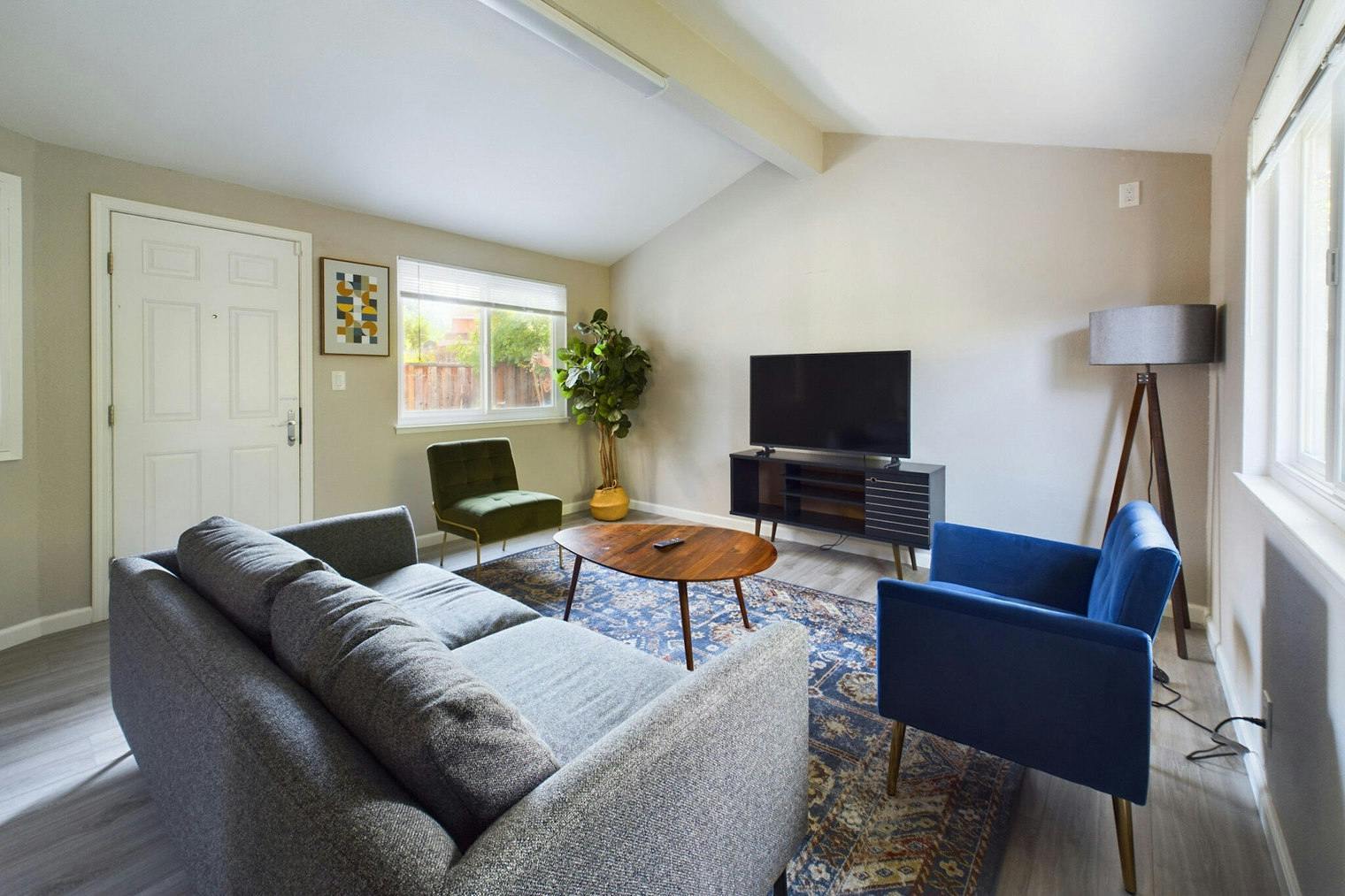 Please, note that the minimum stay for this accommodation is 32 days. You’ll love this comfortable Del Robles furnished three bedroom house with its modern decor, fully equipped kitchen, and exquisite living room. Ideally located, you’re close to all the best that San Jose has to offer! (ID #SFO1506) Designed with you in mind Thoughtfully designed with bespoke finishes, modern furnishings, and a fully equipped kitchen, you’ll enjoy that “I’m home” feeling with this house. Whether you’re lounging in your stylish living room streaming the latest and greatest entertainment on the smart TV or premium wireless speaker, or getting some well-earned rest on the superior quality mattress with fully stocked linens, you’ll fall in love with everything this Del Robles house has to offer. This house also offers in-house laundry. Sleeping arrangements Queen Bed, 63in/160cm Queen Bed, 63in/160cm Queen Bed, 63in/160cm Amenities Building amenities unique to this three bedroom house include an on-site: - Dryer - Washing machine - Parking - Pets allowed Arrival and ongoing support Full Maintenance and Technical Support / cleaning requests at a click of a button. Other things to note Building amenities may have an extra cost. This house has flexible lease options, allowing you to book it for one month, a year, or more. Pets are welcome, though weight limits and breed restrictions apply and may incur fees. Parking is offered based on availability and is subject to a fee. Please keep in mind that this is a walk up building. Also note - There are stairs leading up to the entrance of this apartment, but no elevator Completion of the Background check via a link is mandatory after the booking confirmation. All occupants, and anyone booking on an occupant's behalf, will be subject to a background check, which will include a criminal and credit history to the extent permitted by law. United States citizens, U.S. permanent residents, and non U.S. citizens with work visas must provide a social security number to complete the background check. Should guests not meet requirements or decide not to complete these screenings, the reservation must be cancelled by guests. In case of students, proof of University enrollment and a parents screening are mandatory for the confirmation of a booking...
