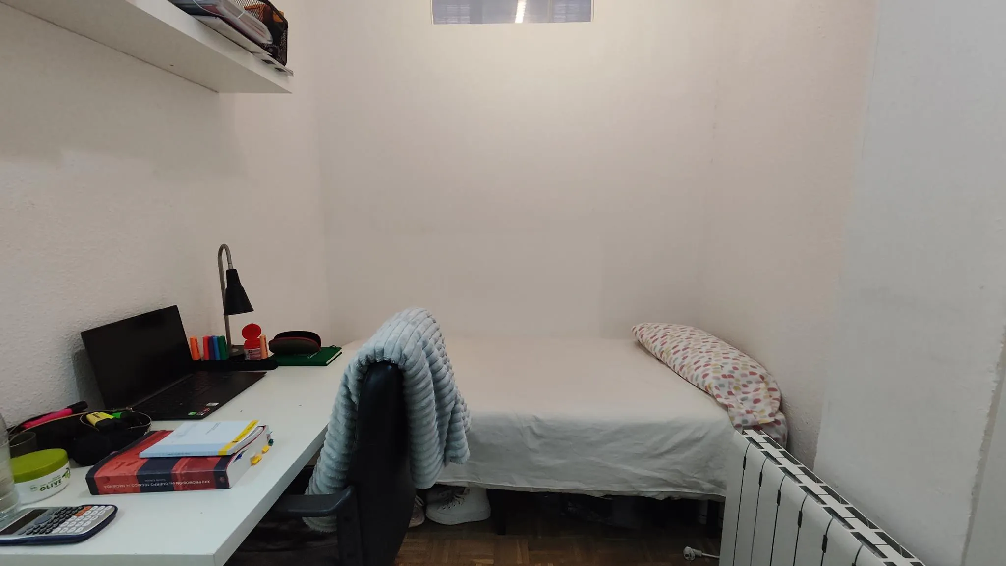 Habitación interior, con ventana a pasillo (no al exterior) con cama doble, armario, escritorio y silla El piso cuenta con otras 5 habitaciones, con un amplio salón comedor interior (sin ventana al exterior) con sofá, mesa comedor para 6 comensales, mesas de centro, televisión etc. Cocina completa e independiente, con dos neveras, vitro, campana extractora, airfryer, tostadora, lavadora, secadora y menaje de cocina. Dos baños completos, ambos con plato de ducha. El piso está en una primera planta (con mucha altura) en una finca tranquila (dos vecinos por planta únicamente) con ascensor y calefacción central. Situado en pleno corazón de Chamberí, entre Metro San Bernardo (Líneas 2 y 4), Metro Quevedo (Línea 2) y Metro Bilbao (Línea 1 y 4), numerosos autobuses en Alberto Aguilera y Fuencarral, Plaza de Olavide, Parque Conde del Valle de Suchil, Malasaña, ICADE etc. Todos los suministros (calefacción, electricidad, internet y agua) incluidos en el precio. Se pide fianza de una mensualidad y media y una mensualidad (más iva) de honorarios...