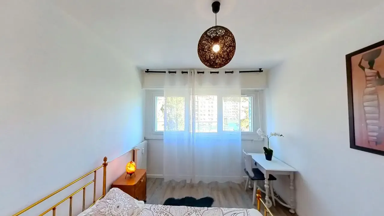 APPARTEMENT 4 PIÈCES AVEC BALCON Au 6 Rue Jean-Baptiste Charcot à Annemasse (74100), découvrez cette colocation de 3 chambres de 75 m2. LA CHAMBRE Cette chambre est équipée d'un lit double, d'une armoire, d'un chevet, d'une table pouvant faire office de bureau et d'une chaise. LES ESPACES COMMUNS Cet appartement de 4 pièces se compose comme suit : un salon avec un canapé, une table à manger ainsi qu'une télévision, deux chambres, une cuisine et une salle de bains équipée d'une douche ainsi que d'une machine à laver. La cuisine comporte un four, un lave-vaisselle, une machine à café, un micro-ondes, une plaque de cuisson et un réfrigérateur américain. Le chauffage est collectif. La fibre optique est disponible dans cet appartement, pour un accès internet haut débit. Il se situe au 3e étage d'un immeuble avec ascenseur. LES EXTÉRIEURS L'appartement comporte également un local vélos. Deux balcons lui offrent de l'espace additionnel bienvenu. LE QUARTIER Niveau transports en commun, on trouve huit lignes de bus à moins de 10 minutes à pied. Les autoroutes A40 et A411 sont accessibles à moins de 3 km. Pour vos loisirs, vous pourrez compter sur un conservatoire et une bibliothèque à proximité. Il y a aussi des restaurants, quatre boulangeries, des commerces, deux supermarchés, deux épiceries et un bureau de poste. Les informations sur les risques auxquels ce bien est exposé sont disponibles sur le site Géorisques : (hidden) Montant estimé des dépenses annuelles d'énergie pour un usage standard : 816 € par an. Prix moyens des énergies indexés sur l'année 2021 (abonnements compris...