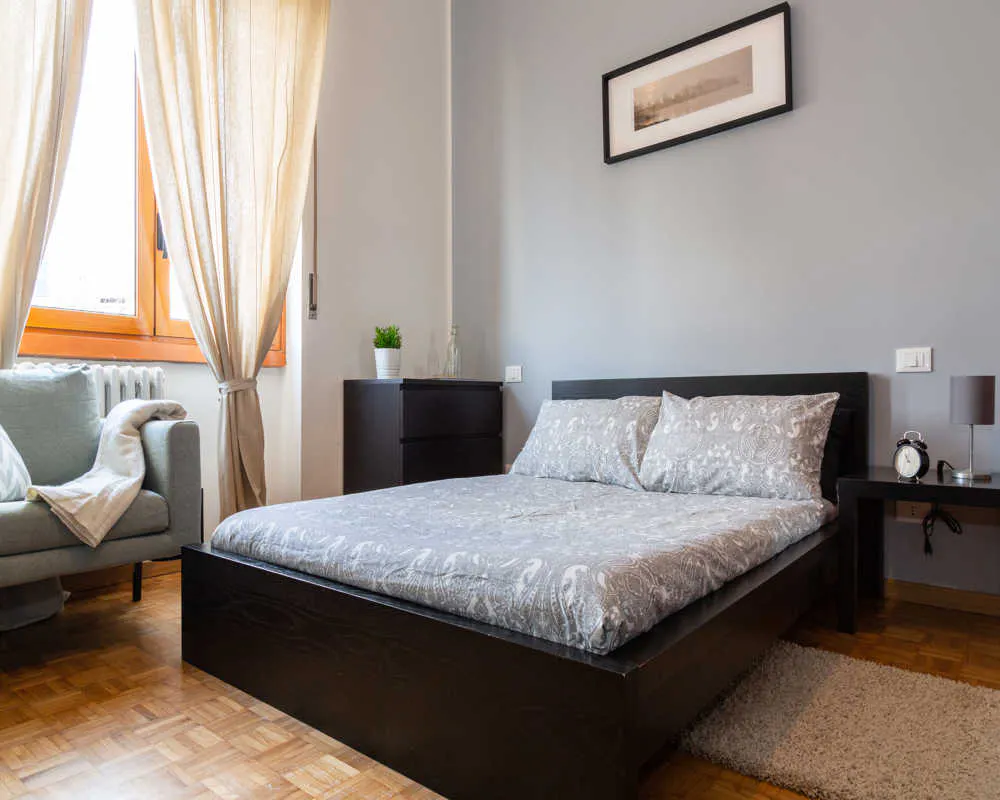 Single room in a shared apartment, composed by 3 bedrooms and 1 bathroom. Of about 19 sqm with a double bed and a work station. With wifi, concierge services, dishwasher, washing machine. Energy class: E, IPE 105.52 Kwh/Sqm year. Current tenants: 1: 19, Male, Student 3: 28, Female, Worker Please be aware that HousingAnywhere is an online booking platform. Therefore exchanging contact details and offering viewings is not possible. If you would like to reserve this accommodation, send me a booking request or a message and please mention your age and occupation. I look forward to talking to you! CONTRACT Please, note that to all our listings we apply fortnightly contracts. This means that If you check-in during the first half of the month, you will be charged for the full month. If you check-in during the second half of the month, you will only be charged for the second half. The second half of the month starts on the 16th. If you check-out during the first half of the month, you will only pay until the 15th of that month. If you check-out during the second half of the month, you will be charged the full month....