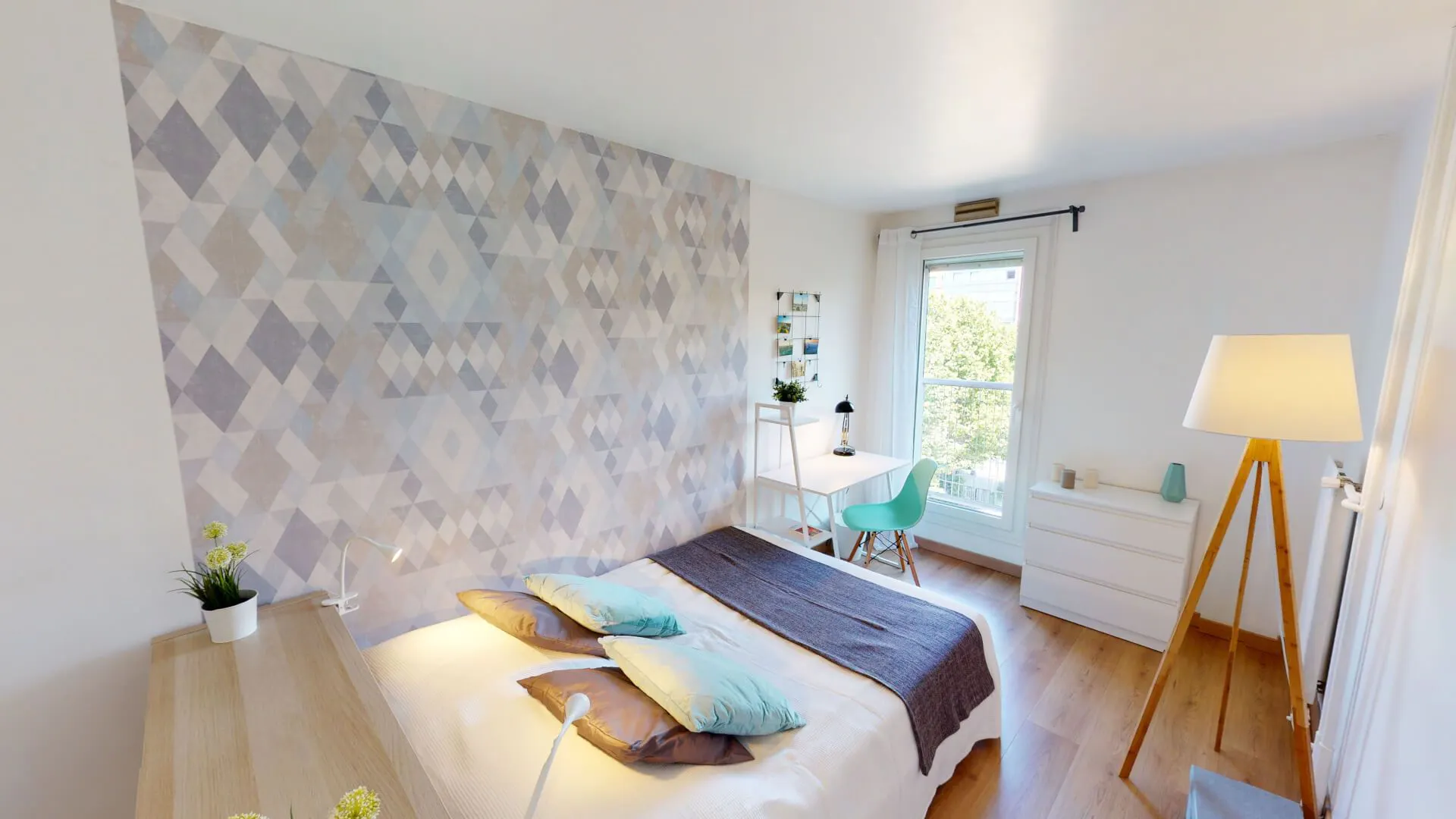 Furnished flat share ! All our flats are located in the city centre and close to all amenities and public transport (Metro, Tramway and Bus). This lovely private bedroom in a fully equipped, furnished and all-inclusive flatshare in Nanterre is a mix of comfort and design. It has got household furnishings, including a bed with pillows and duvet What is missing is your things to feel at home! The room can be locked if you need intimacy. All our rooms are fully furnished (bed, desk, wardrobe, duvet, pillows...). The flatshare is ideally located in the "Nanterre" neighborhood, in the centre of Nanterre. A lot of public transports, restaurants, shops are at your disposal near at hand. The apartment is on floor #4 , with elevator. It is entirely furnished and includes a fully equipped kitchen with fridge, pans, crockery, toaster, kitchen ustensils, microwave, kettle... It also has a washing machine, an ironing board, a clothes rack, an iron. You will also find cleaning items in the flatshare: mop and bucket, dustpan and brush, broom, bagless hoover... Every furnished flatshare includes all bills: condominium fees, housing insurance, electricity, unlimited wi-fi, water, household waste tax. All our flats are fully equipped (washing machine, dishes, decoration...) by our teams, who also take care of the technical and material maintenance. Minimum stay : 1 mois Apartment eligible for CAF up to 258€ / month. The CAF for Caisse d'allocations familiales is a free public service eligible for all, including foreigners and can help you financially to pay part of your housing according to your situation whether you are French or foreign. To find out the potential amount of your assistance, go to the CAF website and complete the online APL (housing assistance) estimate. Service fee : from 790€ The service fee covers the writing of the lease but also the assistance throughout your stay. The service fee covers the repair and maintenance of the equipment as well as access to our ultra-reactive support in case of need for intervention in your accommodation. Deposit : 1100...
