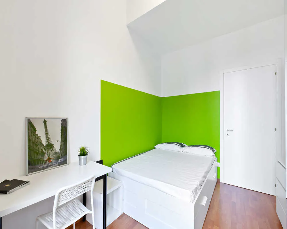 Single room in a shared apartment, composed by 6 bedrooms and 2 bathrooms. Of about 17 sqm with a one and a half bed and a work station. With wifi, concierge services, dishwasher, washing machine. Energy class: F, IPE 103.85 Kwh/Sqm year. Current tenants: 1: 24, Male, Student 3: 19, Male, Student 4: 24, Male, Worker 5: 24, Male, Worker 6: 22, Female, Student Please be aware that HousingAnywhere is an online booking platform. Therefore exchanging contact details and offering viewings is not possible. If you would like to reserve this accommodation, send me a booking request or a message and please mention your age and occupation. I look forward to talking to you! CONTRACT Please, note that to all our listings we apply fortnightly contracts. This means that If you check-in during the first half of the month, you will be charged for the full month. If you check-in during the second half of the month, you will only be charged for the second half. The second half of the month starts on the 16th. If you check-out during the first half of the month, you will only pay until the 15th of that month. If you check-out during the second half of the month, you will be charged the full month....