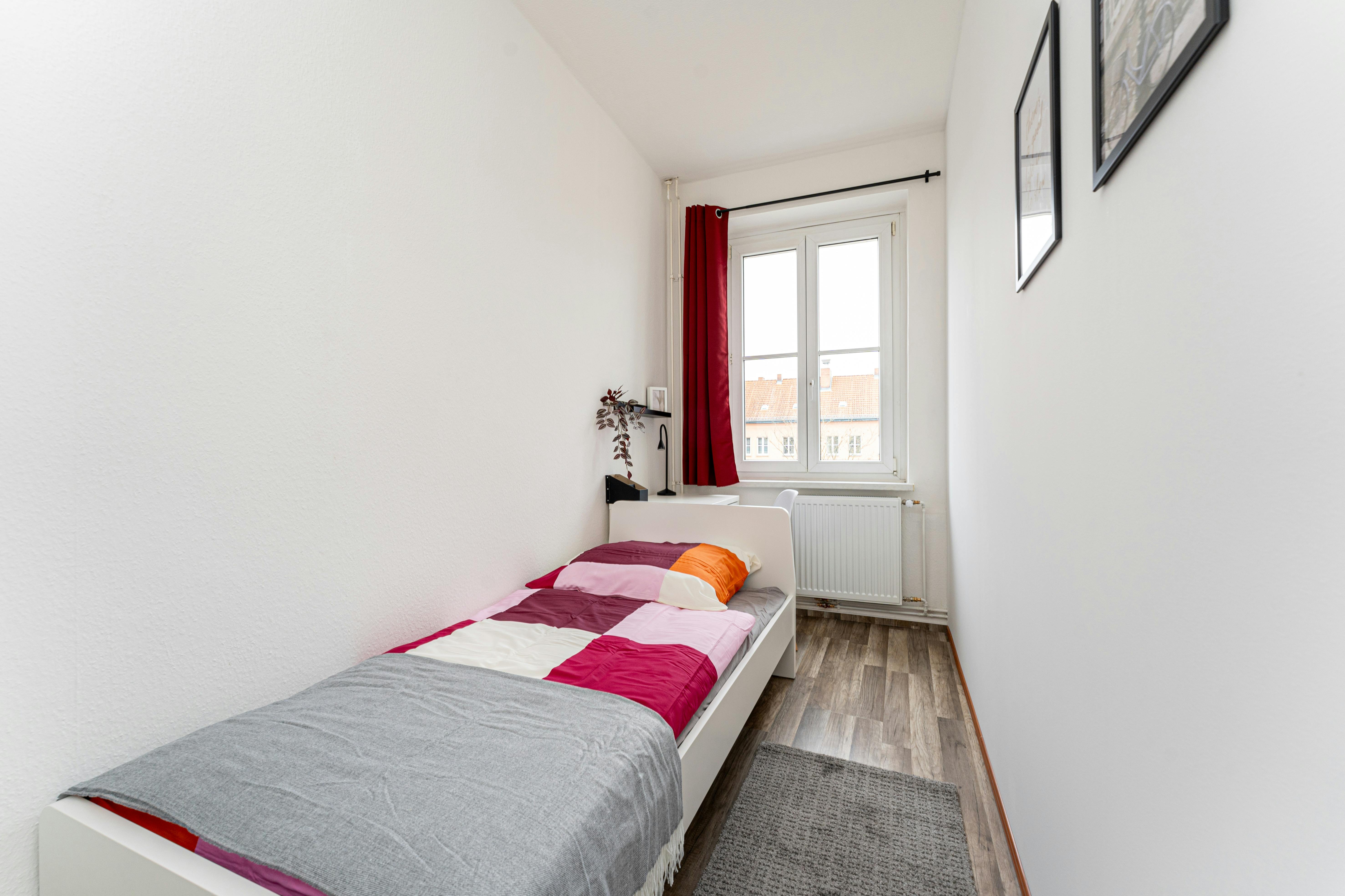 Room 2 Hi Guys, this is a fully furnished room in a shared flat. The room has a comfortable bed, a desk with chair and a wardrobe for your clothes. Also the common areas are fully equipped with washing machine, cooking equipment and all you need for your daily living. Anmeldung/Registration is possible. The monthly rent price is all inclusive (rent + heating + water + Internet + GEZ/german TV license fee). For the move in dates we have only the 1st or the 16th of each month a tenant can move in. In specific cases we have a flexible move in date, but this needs to discuss in our messages. plus the deposit of 950€, which needs to be payed before move in via bank transfer in a single payment....