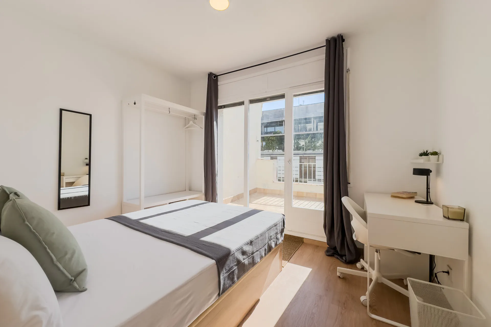 HABITACIÓN CON CAMA DOBLE Y BALCÓN La habitación cuenta con cama doble, zona de escritorio y armario. El apartamento cuenta con cocina completamente equipada y los 3 baños serán compartidos por un máximo de 8 personas. Nuestro coliving está enfocado a estudiantes y jóvenes profesionales, generalmente entre 18 y 40 años, y ambiente internacional. Buscamos que disfrutes de Barcelona y que tu estancia sea cómoda, por lo que nuestros asesores te ayudaran ante cualquier duda. Al hacer tu reserva queremos que disfrutes con nosotros, estés cómodo y cuentes con nuestro equipo y comunidad, por ello no solo te ofrecemos un alquiler, sino que alojándote con nosotros: - Formarás parte de nuestra comunidad, teniendo acceso a eventos y actividades semanales para que descubras Barcelona y te sientas como en casa siendo uno más. - Limpieza semanal de las zonas comunes - Servicio de mantenimiento - Posibilidad de empadronamiento (City registration) para estancias a partir de 6 meses - Servicio Medico 24/7 por Quirón Salud - Atención al cliente 24/7 a través de nuestro departamento de Atención al coliver - Invitación a eventos y actividades especiales Condiciones: - Un mes de Fianza - Membership Club - Suministros incluidos en el precio como electricidad, agua, calefacción y internet de alta velocidad (hasta un máximo de 70€ ) - Consultar estancia mínima - De documentación únicamente solicitamos DNI o pasaporte Nuestro coliving está enfocado a estudiantes y jóvenes profesionales que quieren disfrutar de una estancia en Barcelona. La ubicación es inmejorable en la zona de L'Eixample. Bien comunicado, se cerca de la parada de metro Diagonal línea L3 y L5 de Metro, que conecta directamente con el centro de Barcelona. Además, cuenta con numerosas paradas de autobuses con excelentes conexiones por toda la ciudad rodeado de restaurantes, cafés y tiendas. Check-in: Lunes: 15:00 - 21:00 Martes - Viernes: 15:00 - 22:00 Sábado: 15:00 - 18:00 Domingo/Festivos: el check-in es posible con previo aviso y coordinación. 📅 CONTRATO QUINCENAL En el mes de entrada o de salida: - Si te quedas 14 días o menos, pagarás la mitad del alquiler de ese mes. - Si te quedas más de 14 días, pagarás el alquiler del mes completo. (El importe a pagar de cada mes aparece calculado en el resumen de pagos) 💵 Payments before the check-in: Once the reservation is confirmed, you will be required to make the additional payments (security deposit, etc.) through our secure payment system before the move-in date...