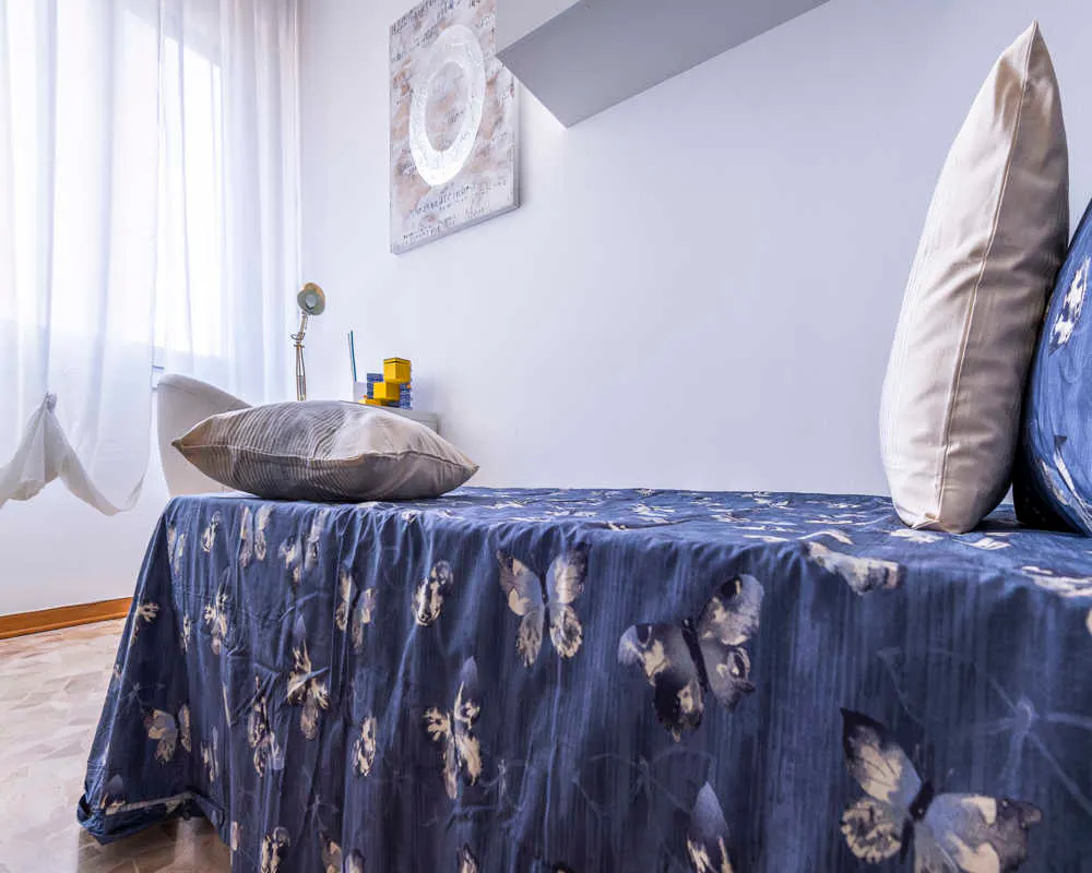 Single room in a shared apartment, composed by 5 bedrooms and 2 bathrooms. Of about 9 sqm with a one and a half bed and a work station. With wifi, washing machine. Energy class: F, IPE 120.17 Kwh/Sqm year. Current tenants: 2: 23, Female, Student 4: 22, Male, Student 5: 27, Male, Student Please be aware that HousingAnywhere is an online booking platform. Therefore exchanging contact details and offering viewings is not possible. If you would like to reserve this accommodation, send me a booking request or a message and please mention your age and occupation. I look forward to talking to you! CONTRACT Please, note that to all our listings we apply fortnightly contracts. This means that If you check-in during the first half of the month, you will be charged for the full month. If you check-in during the second half of the month, you will only be charged for the second half. The second half of the month starts on the 16th. If you check-out during the first half of the month, you will only pay until the 15th of that month. If you check-out during the second half of the month, you will be charged the full month....