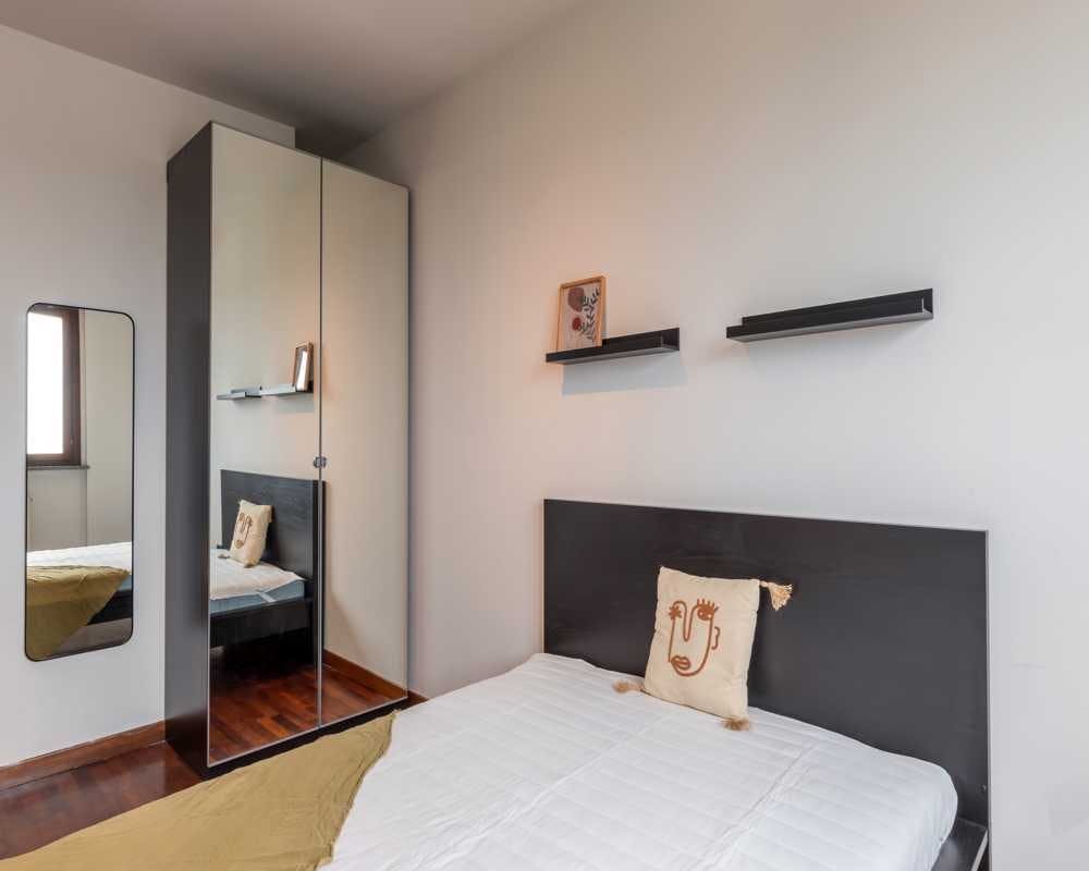 Single room in a shared apartment, composed by 5 bedrooms and 2 bathrooms. Of about 16 sqm with a one and a half bed and a work station. With wifi, air conditioning, dishwasher, washing machine. Energy class: F, IPE 176.51 Kwh/Sqm year. Current tenants: 2: 24, Female, Student 3: 19, Male, Student 4: 19, Female, Student Please be aware that HousingAnywhere is an online booking platform. Therefore exchanging contact details and offering viewings is not possible. If you would like to reserve this accommodation, send me a booking request or a message and please mention your age and occupation. I look forward to talking to you! CONTRACT Please, note that to all our listings we apply fortnightly contracts. This means that If you check-in during the first half of the month, you will be charged for the full month. If you check-in during the second half of the month, you will only be charged for the second half. The second half of the month starts on the 16th. If you check-out during the first half of the month, you will only pay until the 15th of that month. If you check-out during the second half of the month, you will be charged the full month....