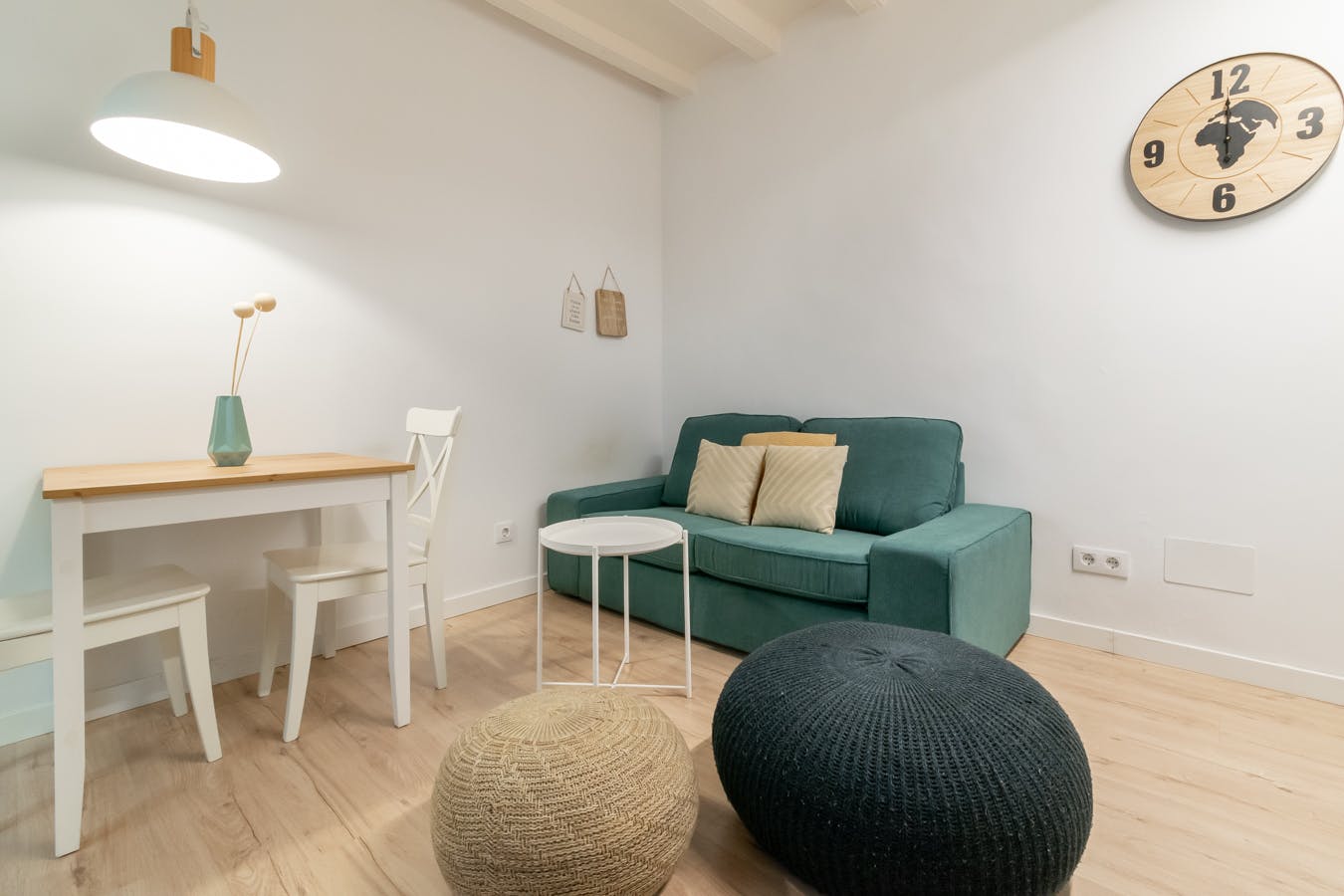 💢💢💢 There are different administration fees depending on the length of the stay. The administration fee on the ad is for bookings from 1-2 months 🔸from 32 to 90 days= (month's rent - 40% + 200€ rental agreement management fee) + VAT 🔸 from 91 to 150 days= (month's rent - 30% + 200€ rental agreement management fee) + VAT 🔸from 151 to 330 days= (month's rent + 200€ rental agreement management fee) + VAT Administration fee -Example apartment of 1000€ 🔸32 to 90 days = (600€ commission + 200€ rental agreement management fee)= 800€ + VAT = 968€ total 🔸91 to 150 days = (700€ commission + 200€ rental agreement management fee) = 900€ + VAT = 1089€ total 🔸151 to 330 days = (1000€ commission + 200€ rental agreement management fee) = 1200€ + VAT = 1452€ total Some apartments have a move-out cleaning fee. General info for all flats: buildings with narrow staircases / no lift 🔸Our office is located very close to the flat in Barceloneta, where you can contact us if you need any help during your stay. 🔸Check-in is possible from Monday to Friday from 12:00 to 19:00 hours. 🔸Very important note: NO parties are allowed in the flat // NO noisy activities are allowed between 22.00 and 08.00 h. 🔸CHECK-IN'S between 19:00 and 23:00 h or on public holidays/local festivals will have a supplement of 50€ to be paid in cash on arrival. We do not accept arrivals after 23:00. 🔸CHECK-IN's on Saturdays and Sundays are subject to a supplement of 60€ and must be consulted in advance. Provision of utilities (water/electricity/gas): 🔸up to 40m2: 130€/month 🔸up to 60m2: 180€/month 🔸more than 60m2: 230€/month Please be aware that HousingAnywhere is an online booking platform. Therefore exchanging contact details and offering viewings is not possible. If you would like to reserve this accommodation, send me a booking request or a message and please mention your age and occupation. I look forward to meeting you! Our apartments are located in an incredibly convenient location in Barcelona. It has easy access to public transportation and is surrounded by all the amenities you might need, including cafes, bars, restaurants, and more. Experience the utmost comfort with our cosy bedrooms, fully equipped kitchens, and modern bathrooms. Don't miss out on this opportunity to enjoy your stay to the fullest. Book now and make the most of your Barcelona experience! 💢💢�...