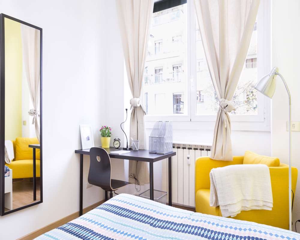 Single room in a shared apartment, composed by 8 bedrooms and 3 bathrooms. Of about 15 sqm with a one and a half bed and a work station. With wifi, dishwasher, washing machine. Energy class: E, IPE 151.58 Kwh/Sqm year. Current tenants: 1: 26, Male, Worker 2: 28, Male, Worker 3: 25, Male, Student 4: 25, Female, Student 6: 36, Male, Worker 8: 24, Male, Student Please be aware that HousingAnywhere is an online booking platform. Therefore exchanging contact details and offering viewings is not possible. If you would like to reserve this accommodation, send me a booking request or a message and please mention your age and occupation. I look forward to talking to you! CONTRACT Please, note that to all our listings we apply fortnightly contracts. This means that If you check-in during the first half of the month, you will be charged for the full month. If you check-in during the second half of the month, you will only be charged for the second half. The second half of the month starts on the 16th. If you check-out during the first half of the month, you will only pay until the 15th of that month. If you check-out during the second half of the month, you will be charged the full month....