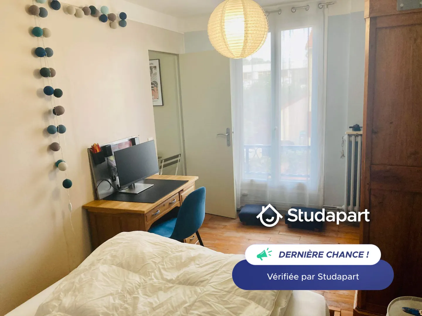 Chambre dans belle maison à la porte de Paris (Porte de Choisy). La chambre est meublée avec un grand lit (160), un bureau, une armoire et meubles de rangement. Elle est vaste et lumineuse (grande fenêtre). La salle de bain et la kitchenette (9m2 : frigo, four micro-onde, plaque, évier, vaisselle et ustensiles de cuisine) sont à partager avec un autre étudiant. Couette, oreiller et protège matelas sont fournis. le linge de lit et les serviettes ne sont pas fournis mais peuvent l'être avec supplément. La maison est très bien située, dans une petite rue calme juste à la porte de Paris. Nous sommes entre 3 stations de métro (Pierre et Marie Curie, Le Kremlin-Bicêtre et Mairie d'Ivry), le RER C (Ivry sur Seine) est à 13 mn et les bus 183, 132 et 323 sont au bout de notre rue ainsi que le T9 et des stations de Vélib. Les commerces et restaurants sont accessibles à pieds. Connexion haut débit, eau, gaz, électricité inclus. Le ménage de la chambre est à la charge du locataire et un forfait de 20 € par mois est facturé pour les pièces communes. Garantie demandée : un mois de loyer chargé. Updated on 19/02/2026 Le propriétaire de ce bien utilise Studapart pour louer son logement en toute sécurité. *Comment ça marche ?* Vous recevez un email Studapart et cliquez sur le lien de l’annonce. Vous créez votre compte Studapart et envoyez votre candidature (dossier + message) sans aucun frais. Si votre profil est retenu, vous pourrez faire une demande de réservation. Les frais Studapart ne sont débités qu’en cas de confirmation de réservation afin de vous garantir une location 100% sécurisée...