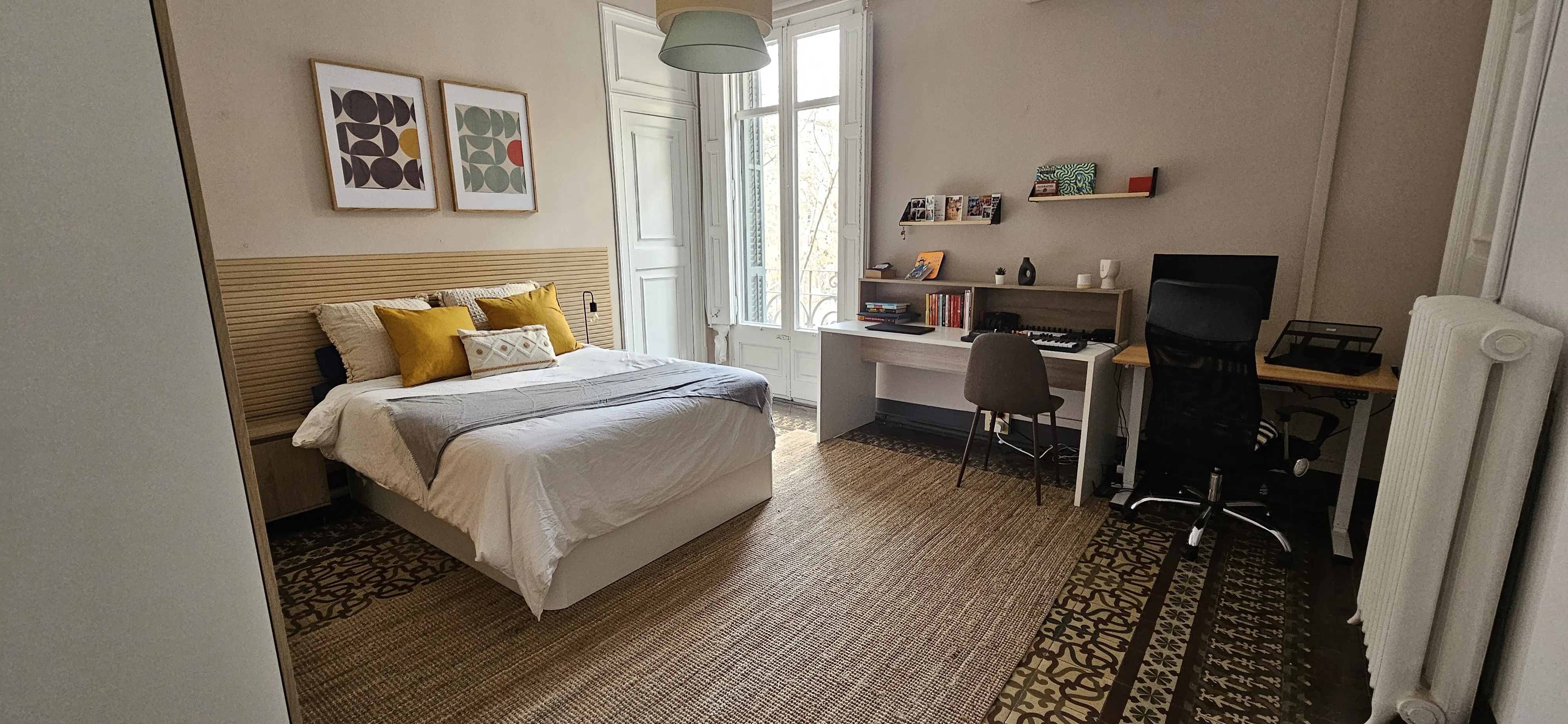 Indulge in the ultimate living experience at our fully-equipped designer apartment, promising unparalleled comfort and style. Nestled in a prime location right in Rambla Cataluña (Eixample), this is where luxury meets convenience. Imagine cooking up a storm or enjoying movie nights with your roommates in our thoughtfully renovated and tastefully decorated apartments. Each space is meticulously designed to foster a warm and inviting atmosphere, making it feel like home from the moment you step in. More than just a place to stay, our community is built on the foundation of fostering connections and creating lasting friendships. Our mission goes beyond providing exceptional design and comfort; it's about curating an environment where you can truly immerse yourself in the Barcelona experience and forge lifelong bonds. With seven rooms accommodating up to seven co-livers, this apartment boasts modern amenities including a fully-equipped kitchen, two pristine bathrooms, and a stylish living room with an open kitchen layout. And to make your stay hassle-free, our all-inclusive pricing covers utilities (electricity, gas, and water), high-speed Wi-Fi, and weekly cleaning of common areas. Join our vibrant community of students and young professionals and elevate your Barcelona experience to new heights....