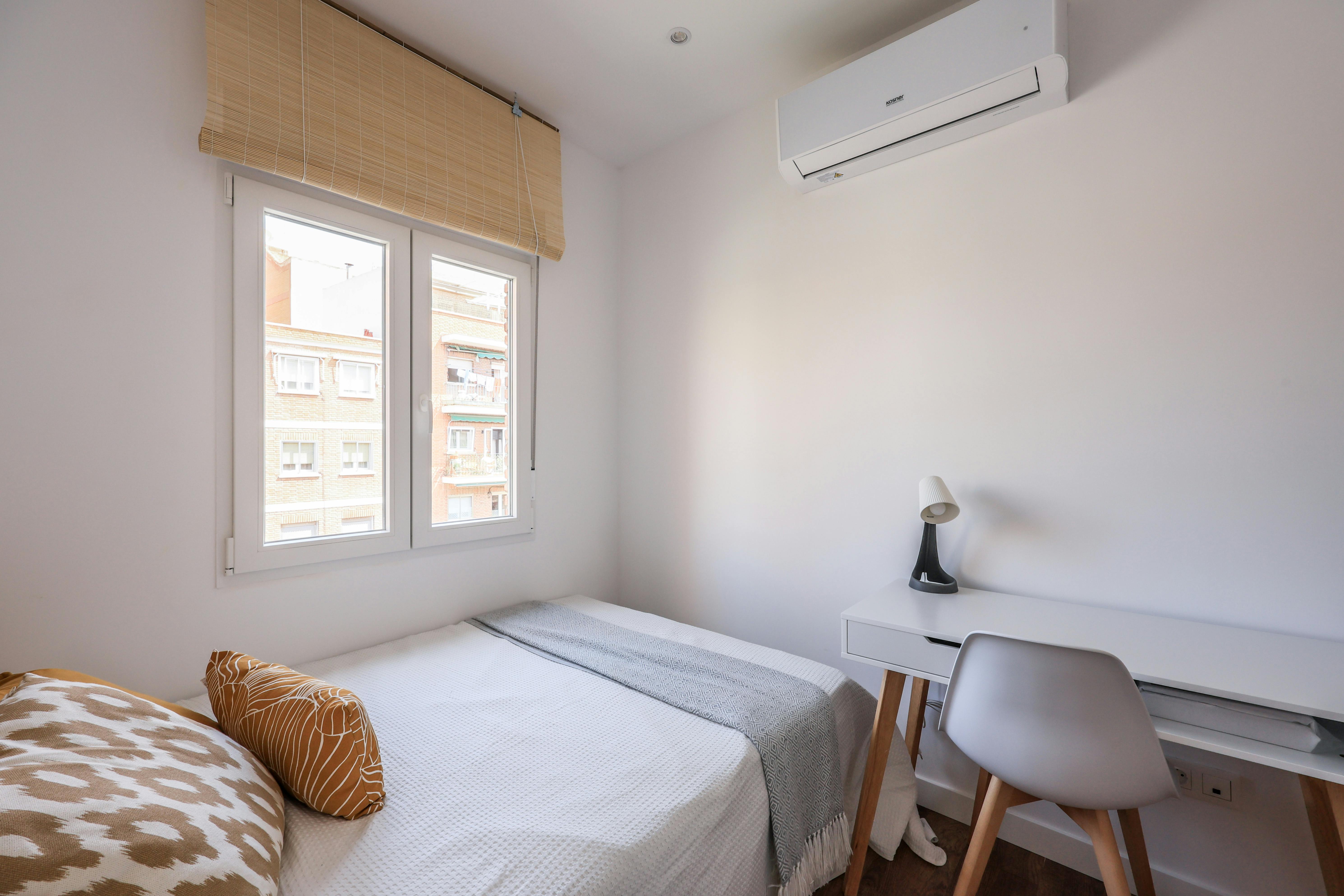 Water, electricity and gas supplies are not included, we charge a fixed fee for supplies based on the annual history of the flat, you can see the amount in the summary of payments. Shared flats have internet access. If you have questions about how to book, you can consult our manual. This bright exterior room has a large 150 x 190 cm bed, a comfortable desk where you can work or study and a large wardrobe to organise your belongings. The room is also air-conditioned so you can adjust the temperature to your liking. It’s in the Vista Alegre neighborhood, in the Carabanchel district. From here you’ll get to universities like the Complutense of Madrid , Politecnica or Carlos III in no time, specially since the last one shares the same metro line with the apartment. In the area there’s also lots of small shops, restaurants, bars and places such as the Vista Alegre Palace and its gardens. The closest metro station is *Carabanchel (Line 5).* Rental conditions: - Free Check-in time: 9:00h - 18:00h from Monday to Friday. - We offer to pick up service from the airport with a cost of 65€+VAT - The utility costs are as described in the listing. Nevertheless, if the usage of utilities exceeds the amount that the fixed price for utilities covers, it might be that extra costs will have to be paid. Please, be aware that HousingAnywhere is an online booking platform. Therefore exchanging contact details and offering viewings is not possible. If you would like to reserve this accommodation, send me a booking request or a message and I will get back to you as soon as possible....
