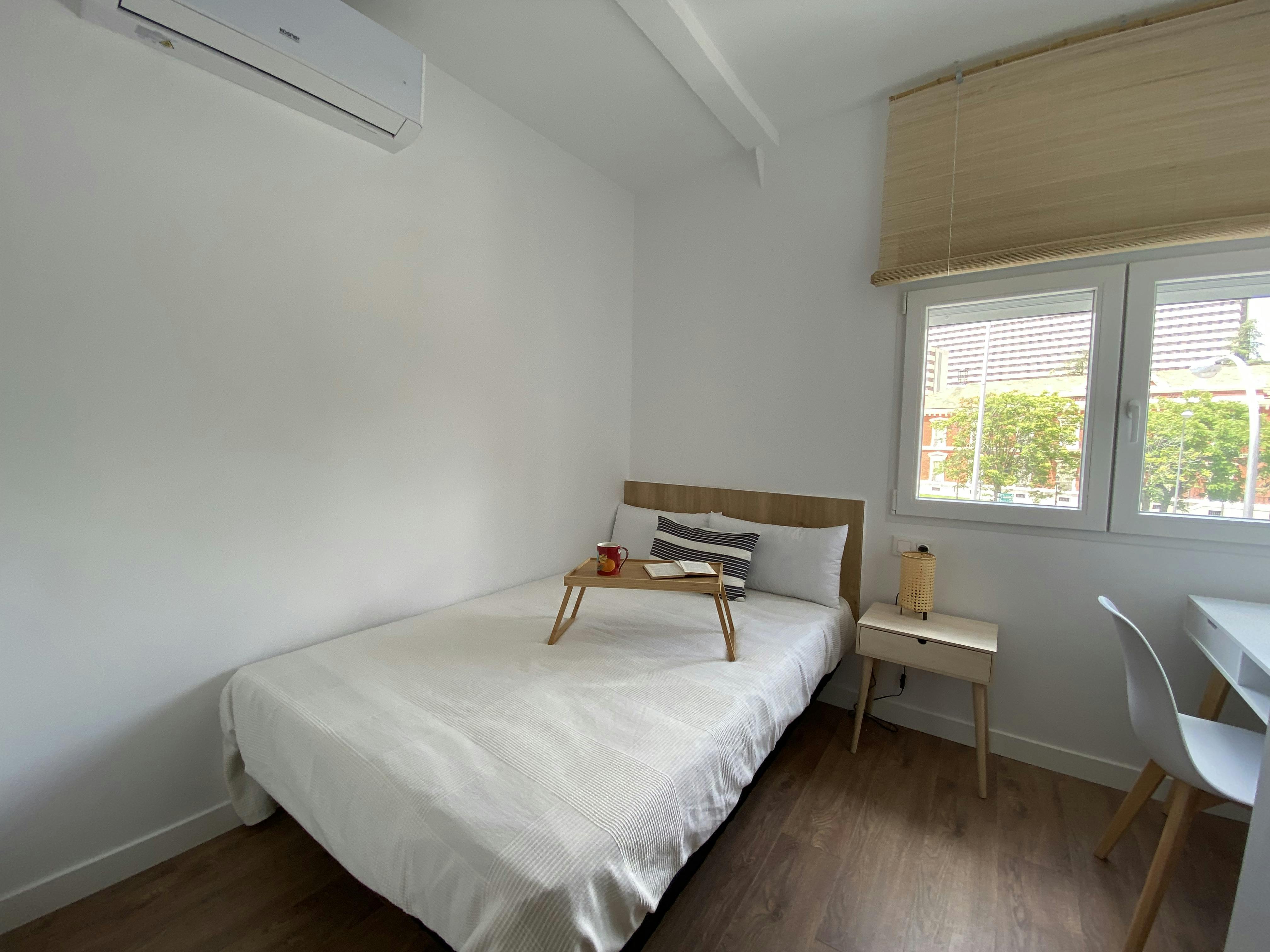 Water, electricity and gas supplies are not included, we charge a fixed fee for supplies based on the annual history of the flat, you can see the amount in the summary of payments. Shared flats have internet access. If you have questions about how to book, you can consult our manual. When you enter this bright, exterior room you will be greeted by a large 150 x 190 cm bed, a comfortable desk where you can work and a large wardrobe where you can store your belongings. The room also has air conditioning to regulate the temperature of the room. It’s in the Vista Alegre neighborhood, in the Carabanchel district. From here you’ll get to universities like the Complutense of Madrid , Politecnica or Carlos III in no time, specially since the last one shares the same metro line with the apartment. In the area there’s also lots of small shops, restaurants, bars and places such as the Vista Alegre Palace and its gardens. The closest metro station is *Carabanchel (Line 5).* Rental conditions: - Free Check-in time: 9:00h - 18:00h from Monday to Friday. - We offer to pick up service from the airport with a cost of 65€+VAT - The utility costs are as described in the listing. Nevertheless, if the usage of utilities exceeds the amount that the fixed price for utilities covers, it might be that extra costs will have to be paid. Please, be aware that HousingAnywhere is an online booking platform. Therefore exchanging contact details and offering viewings is not possible. If you would like to reserve this accommodation, send me a booking request or a message and I will get back to you as soon as possible....