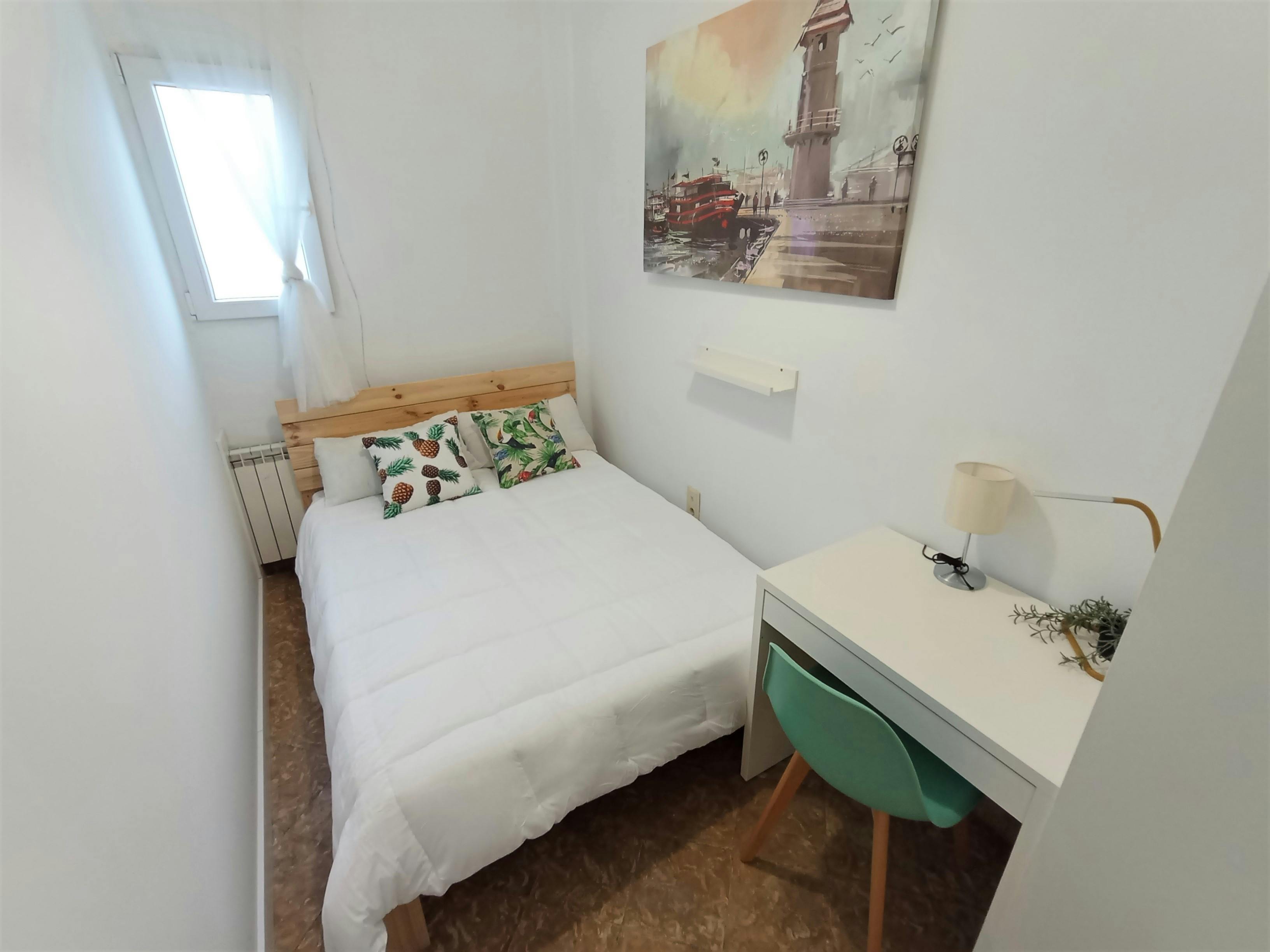 Beautiful room for rent in a shared apartment in Granada! Make this outstanding place your new home, characterized by its iconic modern design. The apartment consists of 10 bedrooms, 3 bathrooms, a fully equipped kitchen, a living room with sofa and TV, a dining table with chairs, and a large terrace. The bedroom comes furnished with a comfortable bed, a nightstand, a mirror, a spacious closet, and a desk with a chair. The interiors are spacious creating a fresh ambiance. This neighborhood is par excellence the favorite of young workers to live in it because it houses the m(hidden)usiness areas of the city. Quiet in the morning, but full of life in the afternoon as it has many establishments where you can unwind. Renting your apartment here ensures that, in addition to living a little more peacefully, you will be well connected with the rest of the city....