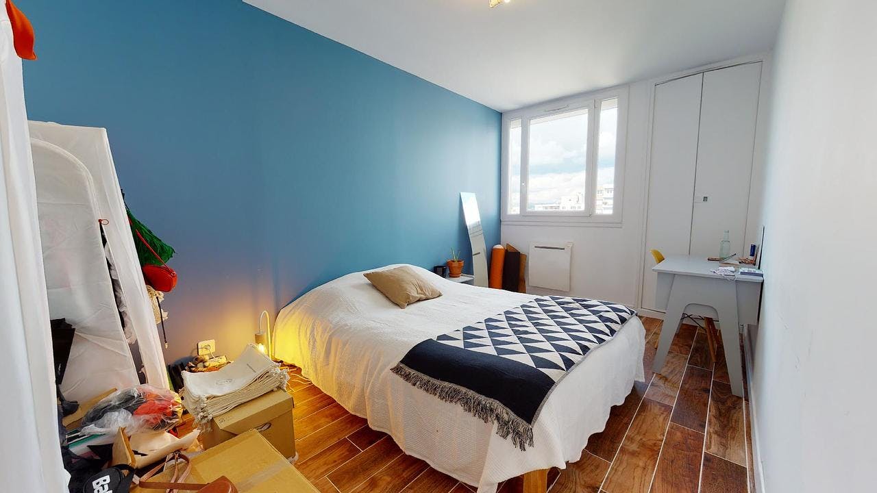 BELLE COLOCATION SPACIEUSE - 5 PIÈCES AVEC BALCON Proche du tramway T4 (Le Tonkin), Notre agence vous propose cette colocation de 4 chambres de 97 m2 à louer au 6 Avenue Salvador Allende (Villeurbanne, 69100). 🛌 LA CHAMBRE La chambre 3 est entièrement meublée : elle dispose d’un lit double, d’une table de chevet, d’un bureau et d’un grand placard mural. Elle est lumineuse et agréable à vivre. 🏡 LE LOGEMENT Son intérieur offre un salon équipé d'un canapé, de deux fauteuils, d'une table à manger ainsi que d'une télévision, trois autres chambres, une cuisine avec un four, un lave-vaisselle, un micro-ondes ainsi qu'une plaque de cuisson et une salle de bains. L'appartement de 5 pièces est équipé d'un chauffage individuel alimenté à l'électricité. Il est situé au 12e étage d'un immeuble avec ascenseur. 🌳 LES EXTÉRIEURS Profitez d'espace extérieur pour gagner en confort avec un balcon. Un gardien s'occupe du bâtiment. 🏙️ LE QUARTIER L’appartement est situé à 3 minutes des tramway T1 et T4 (arrêt Tonkin) et à 8 minutes du métro A (Charpennes), sans compter les nombreuses lignes de bus alentours (C12 et C17 notamment). C’est un positionnement particulièrement idéal pour des étudiants de la Doua (accessible en 5 minutes) et ceux de Lyon 2 et Lyon 3 (T1 direct pour les quais Claude Bernard). -------- Bail individuel à la chambre. Pas de caution solidaire. Chacun est libre de partir quand il veut sans se soucier des autres colocs, dès le moment où il respecte un mois de préavis. Eligible aux APL...