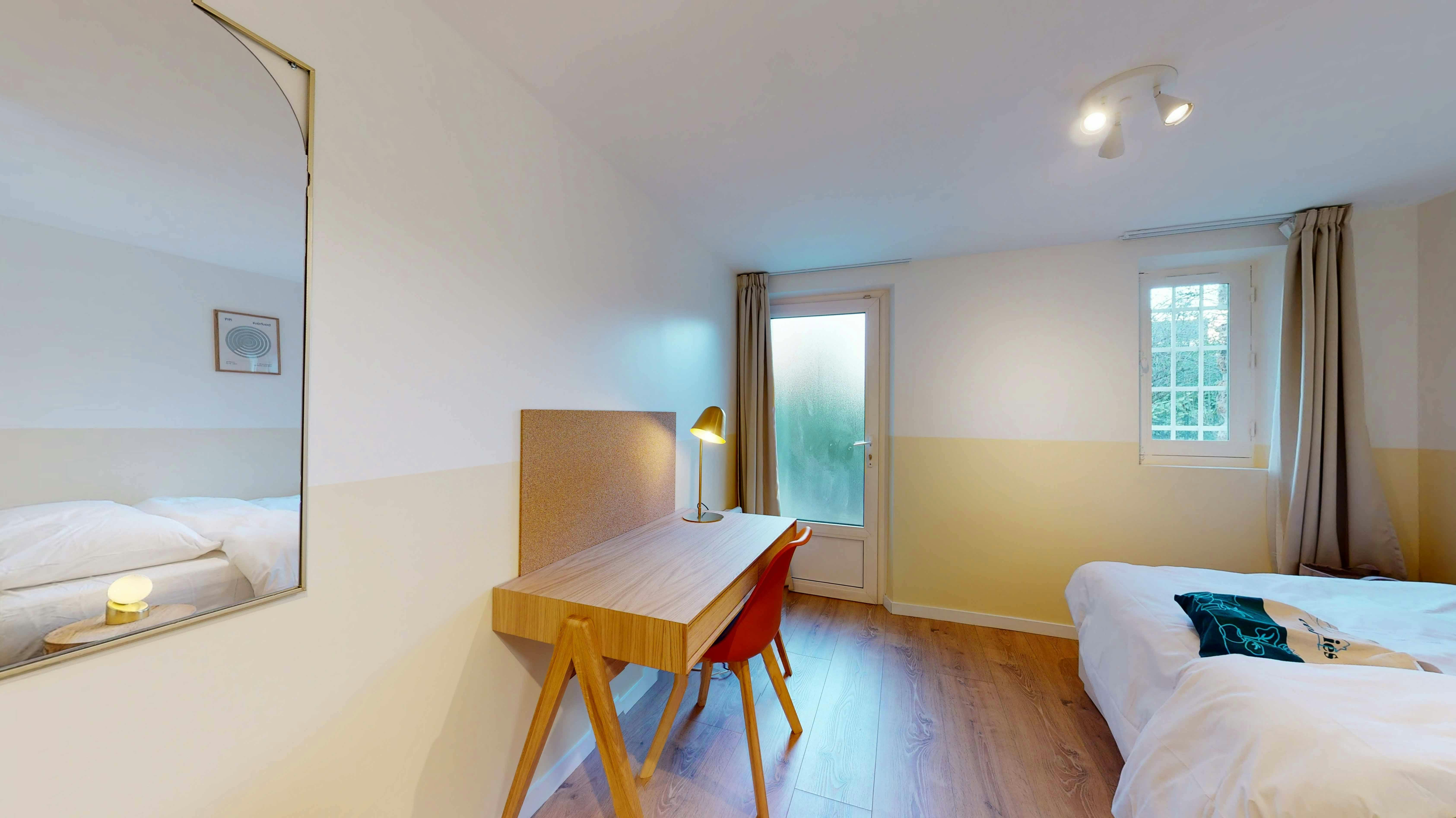 Découvrez la nouvelle résidence Lucette, nichée en plein cœur de Pantin, en Île-de-France. Ancienne maison entièrement rénovée, cette résidence moderne offre un cadre convivial pour 12 colocataires, alliant confort et esprit de communauté. Idéalement située à seulement 8 minutes à pied de la station Hoche (ligne 5), vous pourrez facilement rejoindre le centre de Paris tout en profitant d’un environnement plus paisible. Le résidentiel dispose d’un charmant jardin, d’un salon commun, d'une cuisine ouverte où partager de bons moments et d'espaces extérieurs tels qu’une terrasse, parfaits pour organiser des dîners ou simplement se détendre en plein air. Sur place, vous trouverez également une salle de projection, une buanderie, un espace de rangement et un coin bike rack. Votre espace personnel, parfait pour se détendre ou travailler, est une chambre cosy au design épuré. La chambre privée est équipée d’un lit double, d’une armoire, d’un bureau, d’une lampe de bureau et d’une salle de bain privative avec douche, lavabo et toilettes. Profitez du calme et de l’indépendance tout en ayant accès aux espaces communs pour renforcer la vie en communauté. Les commodités locales sontation tout proches, avec des supermarchés, boulangerie, centre commercial et parc à quelques minutes à pied. Que vous cherchiez un lieu pour étudier, travailler ou simplement vous détendre, la résidence Lucette offre un cadre idéal pour votre nouvelle étape à Pantin...