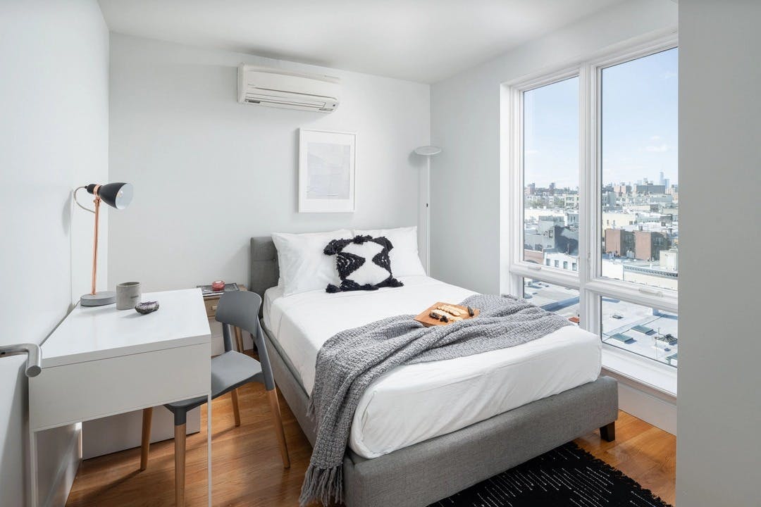 This fantastic shared apartment is nestled in the heart of Bushwick, Brooklyn, a vibrant cultural hub teeming with exciting restaurants and bustling warehouse parties. Located just a short stroll from Maria Hernandez Park, where you can immerse yourself in the lively atmosphere of skaters, dancers, and fitness enthusiasts. Indulge in the trendy beer garden just a quick 10-minute walk away, and treat yourself to a mouthwatering pizza slice from Artichoke afterwards. Explore the neighborhood's renowned street art, conveniently situated only a 10-minute walk from your doorstep. With easy access to the L and M trains, commuting is a breeze. The apartment features 4 bedrooms and 2 bathrooms, fully furnished and stocked with all the essentials you need for a comfortable stay. Enjoy the convenience of regular cleaning services 3-4 times a month, ensuring a tidy living space at all times. Additional perks include laundry facilities and an elevator in the building, as well as access to a gym and rooftop for relaxation and recreation. Your private area boasts a cozy full-sized bed, a functional desk with a chair for work or study, and ample closet space. Just pack your clothes, and you're ready to dive into the vibrant lifestyle of Bushwick living! Please note: -The membership fee is a one-time payment of $200. - The broadcasting fee includes a 3% credit card processing fee...