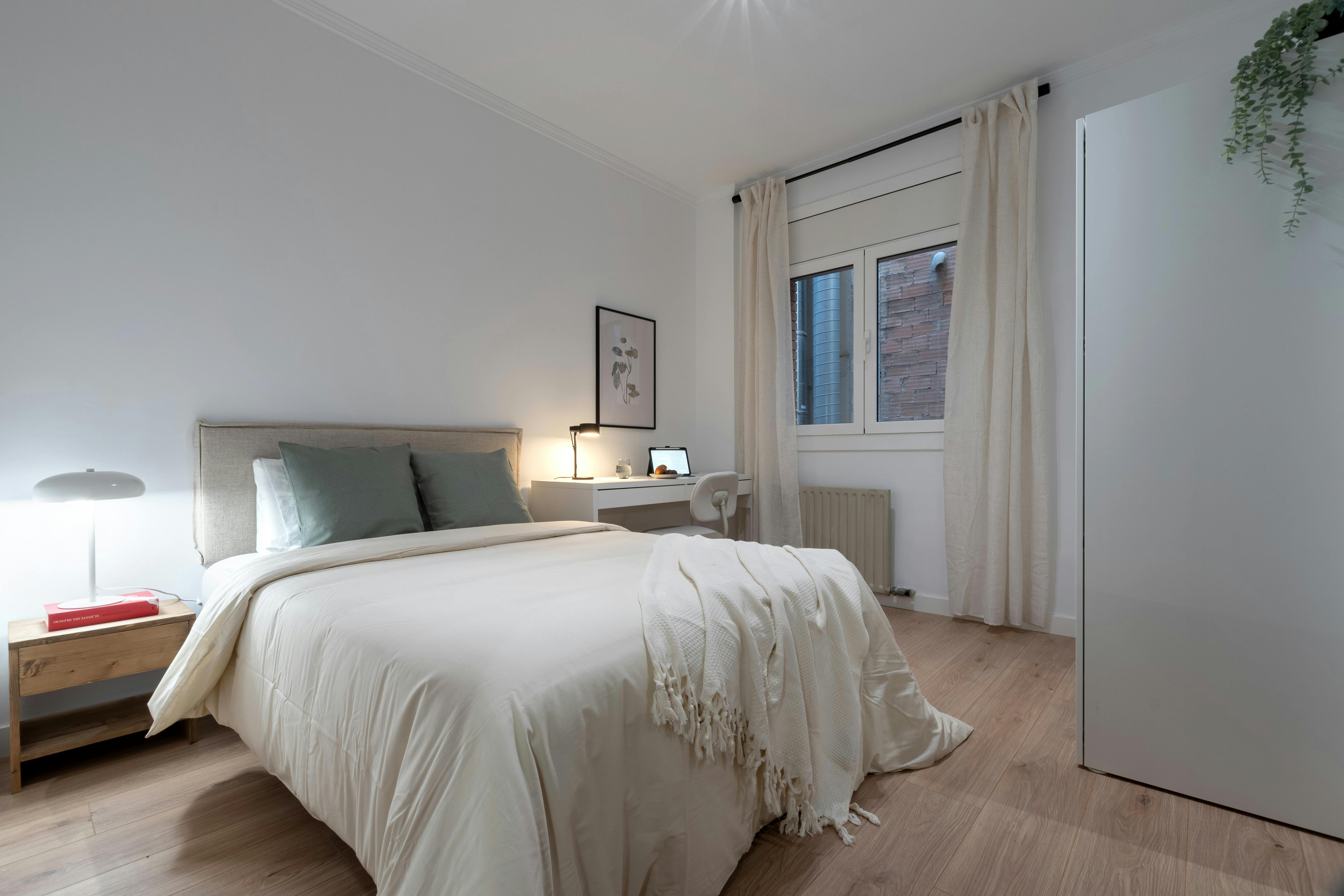 💢💢💢 In this fully furnished house, each of the four double bedrooms offers residents a comfortable and inviting living space. The house features two bathrooms to accommodate residents' needs. The house boasts a nice and spacious living room, perfect for relaxation or social gatherings, and a large fully equipped kitchen with a cozy dining area. Residents enjoy a stress-free living experience with amenities such as Wi-Fi, maintenance fees, weekly cleaning service, and a utility allowance of up to 50 euros included in the price of each room. Practical features like a washing machine, a central location in Barcelona, a fully equipped kitchen, microwave, shared balcony, dishwasher, and oven further enhance residents' comfort and convenience. Additionally, residents benefit from all services being included in their accommodation package, ensuring a hassle-free living experience. The furnished apartments are complemented by a cleaning service, maintaining a tidy and welcoming environment for all occupants. The design of living spaces creates a harmonious and inviting atmosphere for residents to enjoy. 🔔Weekly cleaning for the room and common areas is included in the price. 🔔Utility costs are included up to 50€. 💢💢💢 Virtual Tour: https://my.matterport.com/show/?m=z8CDZnEZi8...