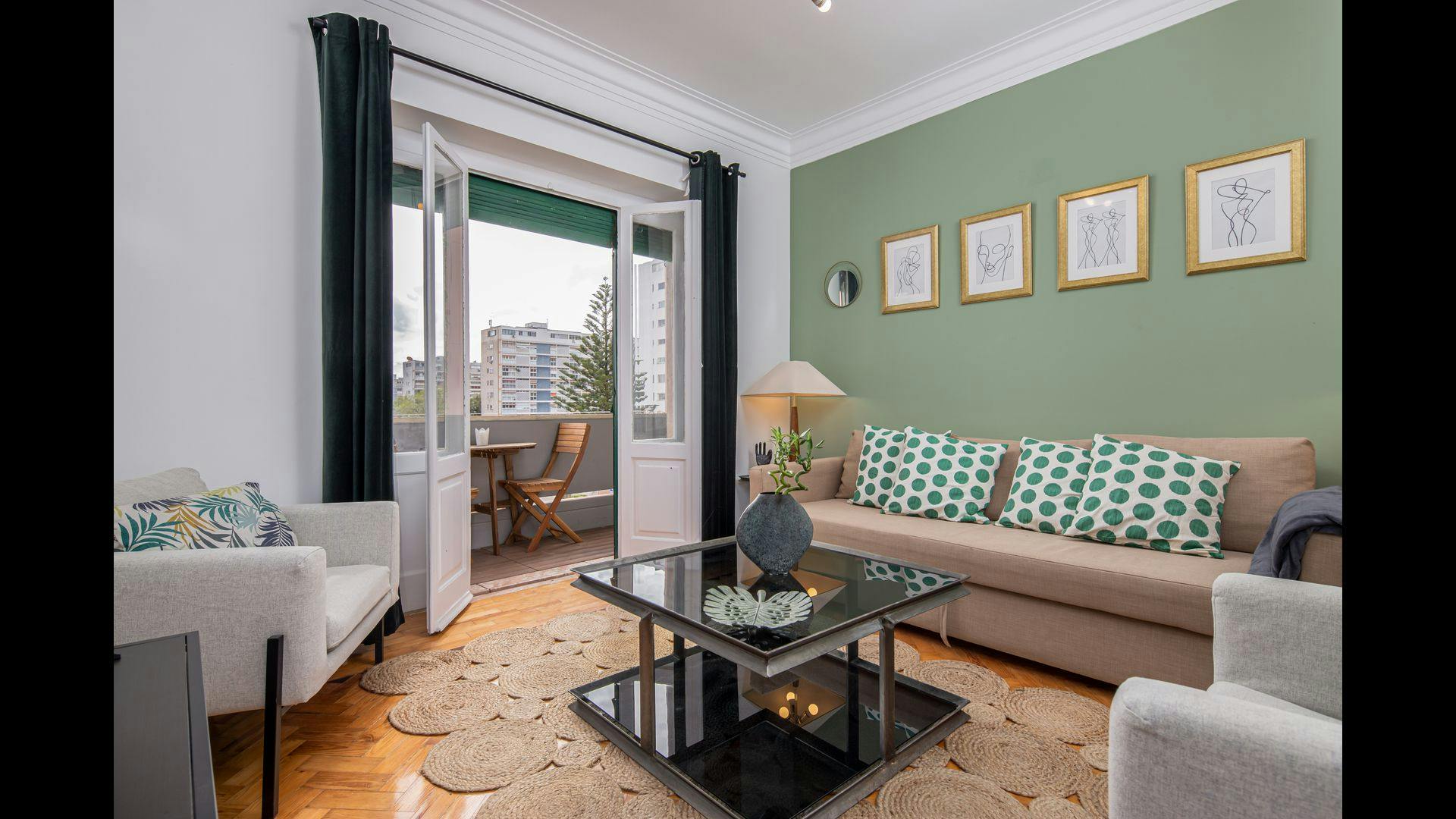 Located in the central neighborhood of Alvalade, set in a well-maintained residential building, this spacious four-bedroom apartment offers a welcoming and functional environment for residents who value space and comfort. It is equipped with everything you will need during your stay, with free WI-FI, cable TV, a full kitchen, a washing machine and dishwasher, and various appliances for your convenience. This beautiful property comes fully equipped to meet all your needs, and consists of the following: BEDROOMS: Four generous bedrooms, three of them with a queen-sized bed and another with a single bed, which has a drawer that converts into a second single bed. Large windows let in plenty of natural light, creating an inviting atmosphere. Cupboards offer ample storage space for clothes and personal belongings. Well-insulated walls to ensure privacy and noise reduction. BATHROOMS: Two complete and well-equipped bathrooms, one of which is connected to one of the bedrooms. A hairdryer is available for your convenience. KITCHEN: Full kitchen with high-quality appliances, such as a stove, oven, fridge, microwave and dishwasher. Spacious counters offer ample area for food preparation. Built-in cupboards for storing kitchen utensils, groceries, and accessories. LIVING ROOM: Airy and well-lit living room, ideal for relaxing or receiving visitors. Direct access to the balcony, visually expands the space and allows fresh air and natural light in. BALCONY: The welcoming balcony, accessible from the living room, provides a peaceful outdoor haven, ideal for enjoying al fresco meals, reading a book, or simply taking in the view. YOU ARE REQUIRED TO SIGN A LEASE AGREEMENT AFTER BOOKING THIS PROPERTY SECURITY DEPOSIT REQUIRED (1000€): The security deposit will serve as a protection for any damages that may occur at the property. WELCOME KIT: To make sure your stay is as comfortable as possible, we offer a welcome kit that includes essentials for your first week of stay, such as dishwasher and laundry caps, toilet paper, and cooking basics such as olive oil, vinegar, salt, and pepper...