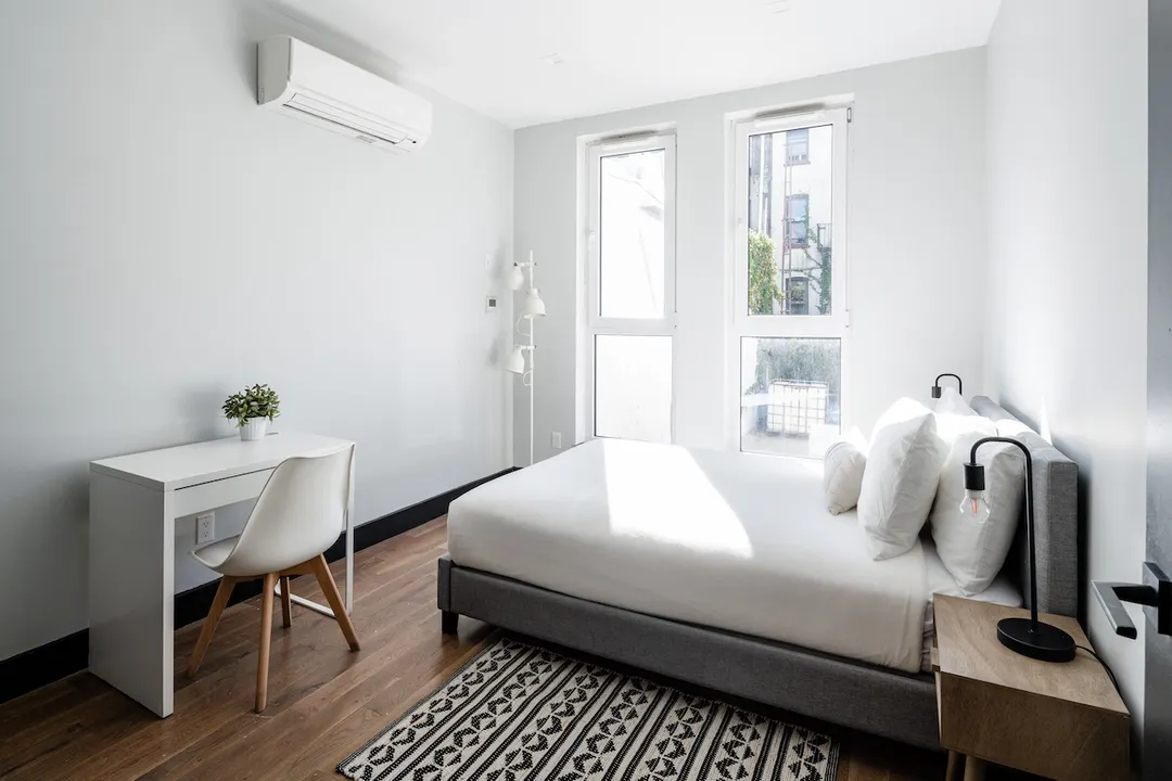 This shared apartment is situated in Bedstuy, Brooklyn, a neighborhood known for its preserved late-19th century charm. You'll find rows of elegant brownstone homes on tree-lined streets and plenty of open skies. The area is vibrant with restaurants, coffee shops, bars, and grocery stores. The apartment is conveniently close to the J and Z trains and just a few blocks from the M train. The apartment features 4 bedrooms and 2 bathrooms. It is fully furnished and equipped with all necessary household essentials and appliances, with cleaning services provided 3-4 times a month. The building includes laundry facilities, an elevator, a virtual doorman, a gym, a rooftop, and a media room. Your private space is furnished with a full-sized bed, a desk with a chair, and a closet. All you need to bring are your clothes. Please note: -The membership fee is a one-time payment of $200. - The broadcasting fee includes a 3% credit card processing fee...