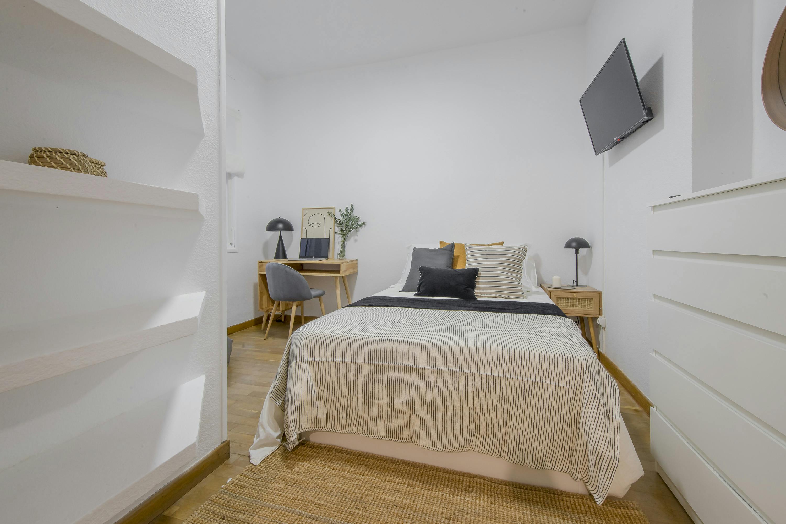 💢💢💢 This bedroom comes with: ✔No window 🛏Type of bed: 135x190 cm We present this comfortable room in Calle de las Mártires Concepcionistas, Madrid. The property consists of: 2 full bathrooms, fully equipped kitchen (fridge, oven, microwave, ceramic hob, utensils, coffee maker and toaster) and 6 comfortable bedrooms. The room has bed with canapé, mirror, wardrobe, desk, smart tv so you can enjoy your favourite channels and streaming platforms. The price includes: - Maintenance technician - Contract management - Cleaning of the common areas once a week - Flexibility of contracts - Rooms with high quality standards - Lockable door - Customer service - All utilities included (water, electricity, gas and wifi) - Kitchen utensils. Unbeatable location near the Wizink Center and the Corte Inglés de Goya, close to the metro stations of Manuel Becerra, Lista and O'Donnell, several bus stops, gyms, banks, health centres, supermarkets and shops, all together with a spectacular social and cultural life. We are waiting for you, 🔔Administration fee must be paid by cash (Other types of payments, please contact us) 🔔Profile: 18-35 years (older ages may be accepted case by case) 🔔A weekly cleaning in common areas is included in the price. 💢💢�...