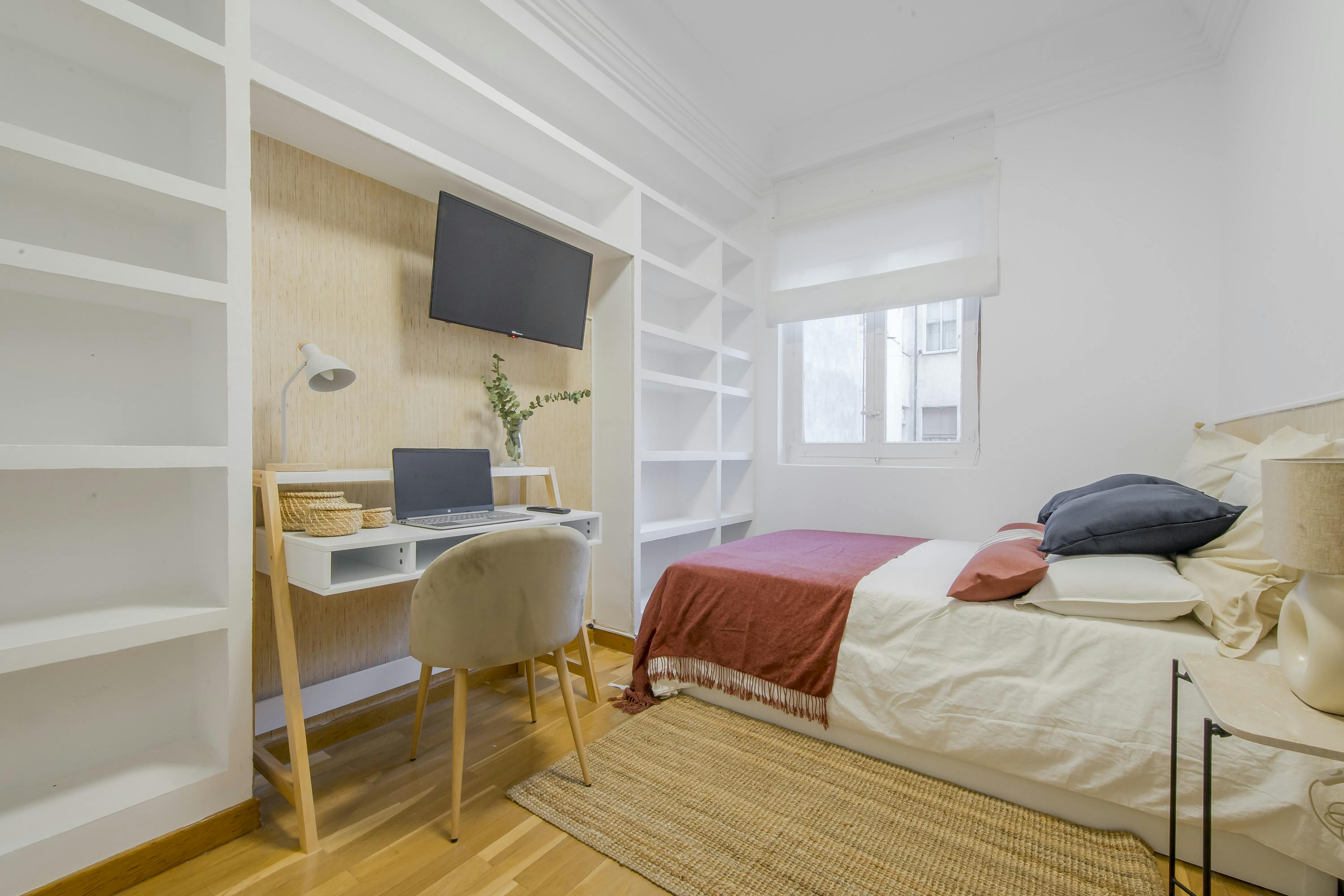 💢💢💢 This bedroom comes with: ✔Interior window 🛏Type of bed: 135x190 cm We present this comfortable room in Calle de las Mártires Concepcionistas, Madrid. The property consists of: 2 full bathrooms, fully equipped kitchen (fridge, oven, microwave, ceramic hob, utensils, coffee maker and toaster) and 6 comfortable bedrooms. The room has bed with canapé, mirror, wardrobe, desk, smart tv so you can enjoy your favourite channels and streaming platforms. The price includes: - Maintenance technician - Contract management - Cleaning of the common areas once a week - Flexibility of contracts - Rooms with high quality standards - Lockable door - Customer service - All utilities included (water, electricity, gas and wifi) - Kitchen utensils. Unbeatable location near the Wizink Center and the Corte Inglés de Goya, close to the metro stations of Manuel Becerra, Lista and O'Donnell, several bus stops, gyms, banks, health centres, supermarkets and shops, all together with a spectacular social and cultural life. We are waiting for you, 🔔Administration fee must be paid by cash (Other types of payments, please contact us) 🔔Profile: 18-35 years (older ages may be accepted case by case) 🔔A weekly cleaning in common areas is included in the price. 💢💢�...