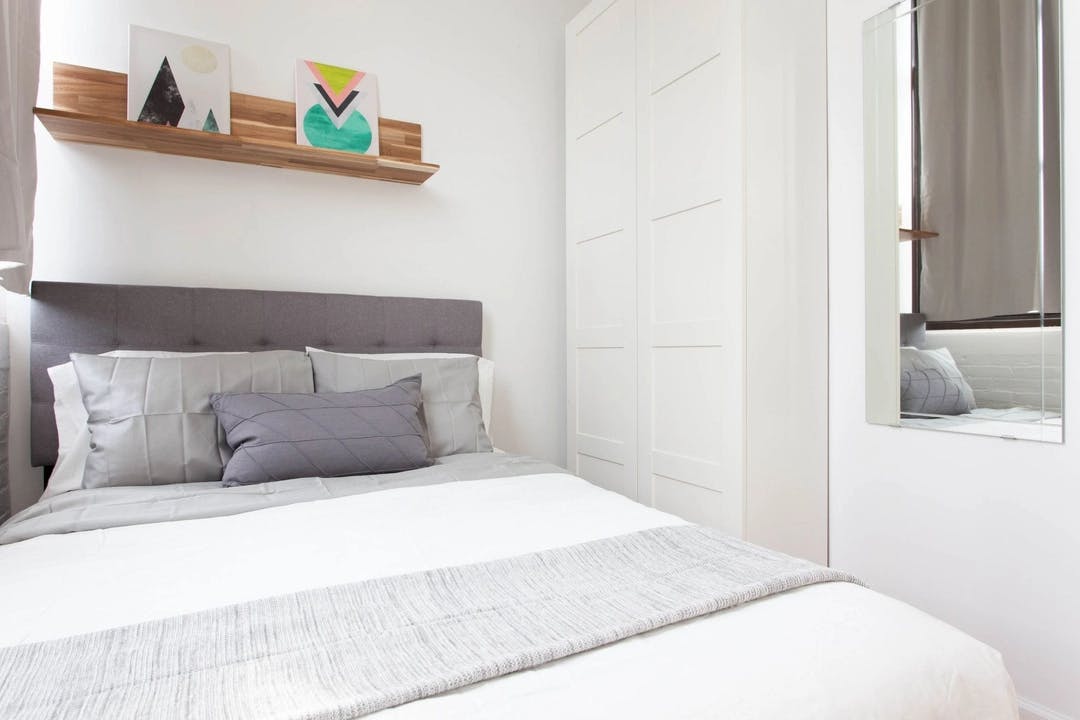 This shared apartment is nestled in East Williamsburg, a vibrant neighborhood where new dive bars, bodegas, and galleries thrive, fueled by the influx of creative minds flocking to Brooklyn's converted loft spaces. With an abundance of fantastic dining options, eye-catching street art, and trendy boutiques, the area is alive with energy. Attractions such as the Bushwick Food Coop, House of Yes, Momenta Art Museum, and The Chocolate Factory are all within walking distance. Conveniently located near the L and G subway lines, just 1 and 6 blocks away respectively, exploring the city is effortless. Featuring 5 bedrooms and 2 bathrooms, this apartment is fully furnished with all the essentials and appliances you need. Plus, enjoy the convenience of a cleaning service provided 3-4 times a month. Building amenities include laundry facilities, a gym, and rooftop access. Your private area includes a full-sized bed, a desk with a chair, and a closet—leaving you to only bring your clothes. Immerse yourself in the vibrant atmosphere of East Williamsburg from the comfort of your stylish and well-equipped apartment. Please note: -The membership fee is a one-time payment of $200. - The broadcasting fee includes a 3% credit card processing fee...