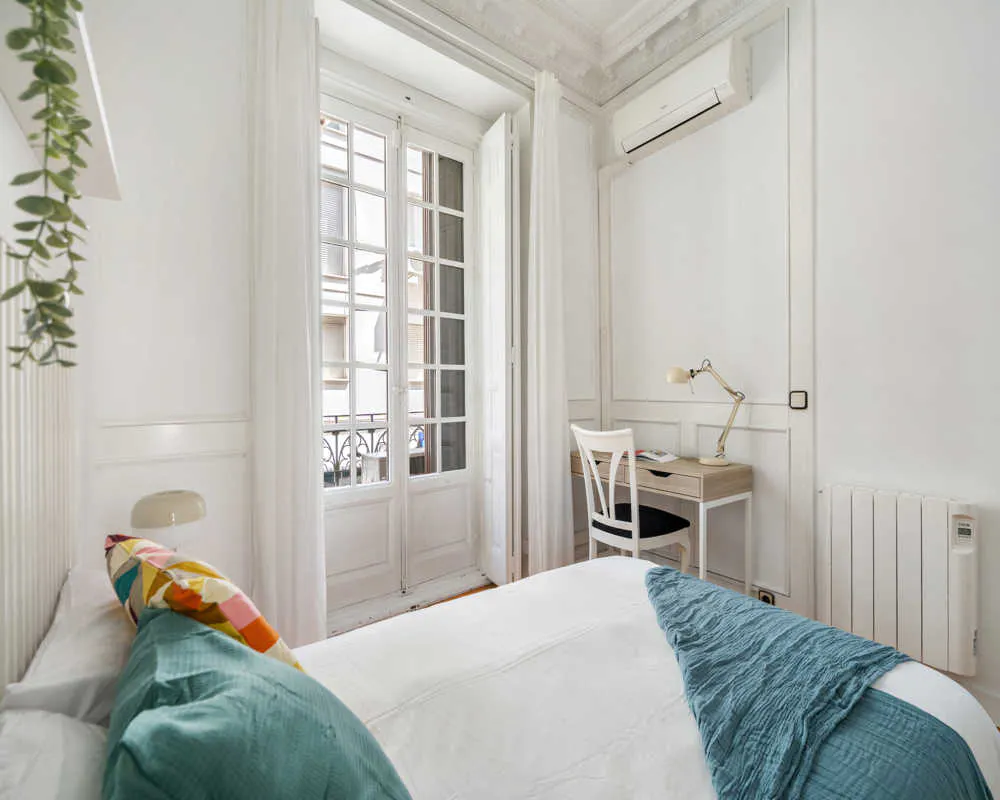 Located in the vibrant *Universidad/Justicia/Malasaña/Chueca* area, this comfortable room offers a compact urban retreat close to shops, cafés and public transport. The *Room* measures 11.5 m2 and includes key comforts such as an oven, microwave, washing machine and Wi‐Fi. The flat has 3 bathrooms across its 180 m2, with 7 beds in a 7‐room layout on the 1st floor. The building features an *elevator* , making access easy for daily comings and goings. Ideal for students and young professionals seeking a social, well‐equipped flatshare in central Madrid with reliable utilities and appliances. Limited rooms available — enquire now to secure this space. Current tenants: 2: 21, Female, Student 7: 19, Male, Student Please be aware that HousingAnywhere is an online booking platform. Therefore exchanging contact details and offering viewings is not possible. If you would like to reserve this accommodation, send me a booking request or a message and please mention your age and occupation. I look forward to talking to you! CONTRACT Please, note that to all our listings we apply fortnightly contracts. This means that If you check-in during the first half of the month, you will be charged for the full month. If you check-in during the second half of the month, you will only be charged for the second half. The second half of the month starts on the 16th. If you check-out during the first half of the month, you will only pay until the 15th of that month. If you check-out during the second half of the month, you will be charged the full month. Tenants can establish legal residency using the accommodation's address....