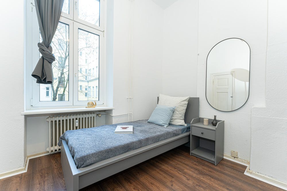 Summer Offer: The monthly rent is reduced €380 for July, and August 2025 — regular rent applies again from September 2025. There are rooms for rent in this modern 7-bedroom, 1-bathroom apartment on Kanstraße in Charlottenburg. Each room comes furnished with a single bed, desk, and wardrobe. There is wood flooring, high ceilings, and big windows which make each room feel bright and spacious. This apartment has everything you need to move in including a kitchen with an oven and rangehood, and a bathroom with a shower over the bath. • There is central heating to keep you warm in the colder months. • The kitchen comes with everything you need to cook, including plates and cutlery. • There are beautiful hardwood floors throughout the apartment as well as neutral decor. • Each room has a large window to let in plenty of natural light. • The Berlin Institute of Technology is just over 20-minutes away by bus or metro. • Wi-Fi installed: yes Landlord policies • Languages spoken: English, German, Russian • Lives on property: no • Payment method: bank transfer • Registration is provided Documents required: o Proof of income (last 3 months) or work contract: yes o Proof of enrollment (students): yes o Guarantor (if you don't have proof of income): yes o Copy of guarantor's ID: yes o Copy of guarantor's work contract: yes Check-in/out: o Check-in hours: Monday - Friday from 10:00 - 16:00 o You will have to pick up your key at the landlord's office. You will receive the address once your booking is confirmed. Kantstrasse, a vibrant street in the heart of Berlin, Germany, draws its name from the eminent philosopher Immanuel Kant. This bustling thoroughfare, affectionately abbreviated as Kantstr., is located in the district of Charlottenburg-Wilmersdorf and is a magnet for locals and tourists alike. Its eclectic mix of shops, cafes, restaurants, and bars creates a lively and diverse atmosphere. Visitors are enticed to explore the culinary delights on offer, with a plethora of eateries serving up everything from traditional German dishes to exotic Asian flavors. As one ventures further along the street, they are immersed in its rich history, evident through its charming architecture and timeless landmarks that have weathered the changes of time. The allure of Kantstrasse extends beyond its gastronomic and historical appeal. Its vibrant arts and crafts community has flourished, with boutiques, art galleries, and antique shops showcasing unique treasures. As the street meanders through the city, it unites tradition with modernity, attracting a young and creative crowd of entrepreneurs. This infusion of new ideas and artistic ventures further enriches the street's identity. Kantstrasse becomes a destination for seekers of vintage fashion, art enthusiasts, and those intrigued by the cutting-edge trends shaping Berlin's cultural landscape. As day turns to night, the spirit of Kantstrasse transforms into a dynamic nightlife scene. Pubs, bars, and clubs light up, drawing in crowds seeking entertainment and social camaraderie. The atmosphere buzzes with excitement as people gather to unwind, savoring a range of libations and live music performances. The harmonious blend of the old and new, tradition and innovation, creates a captivating ambiance that defines Kantstrasse. This thriving street encapsulates the vibrant spirit of Berlin, inviting visitors to revel in its diversity and embrace the unique experiences it offers, making it a must-visit destination in the city's ever-evolving landscape...