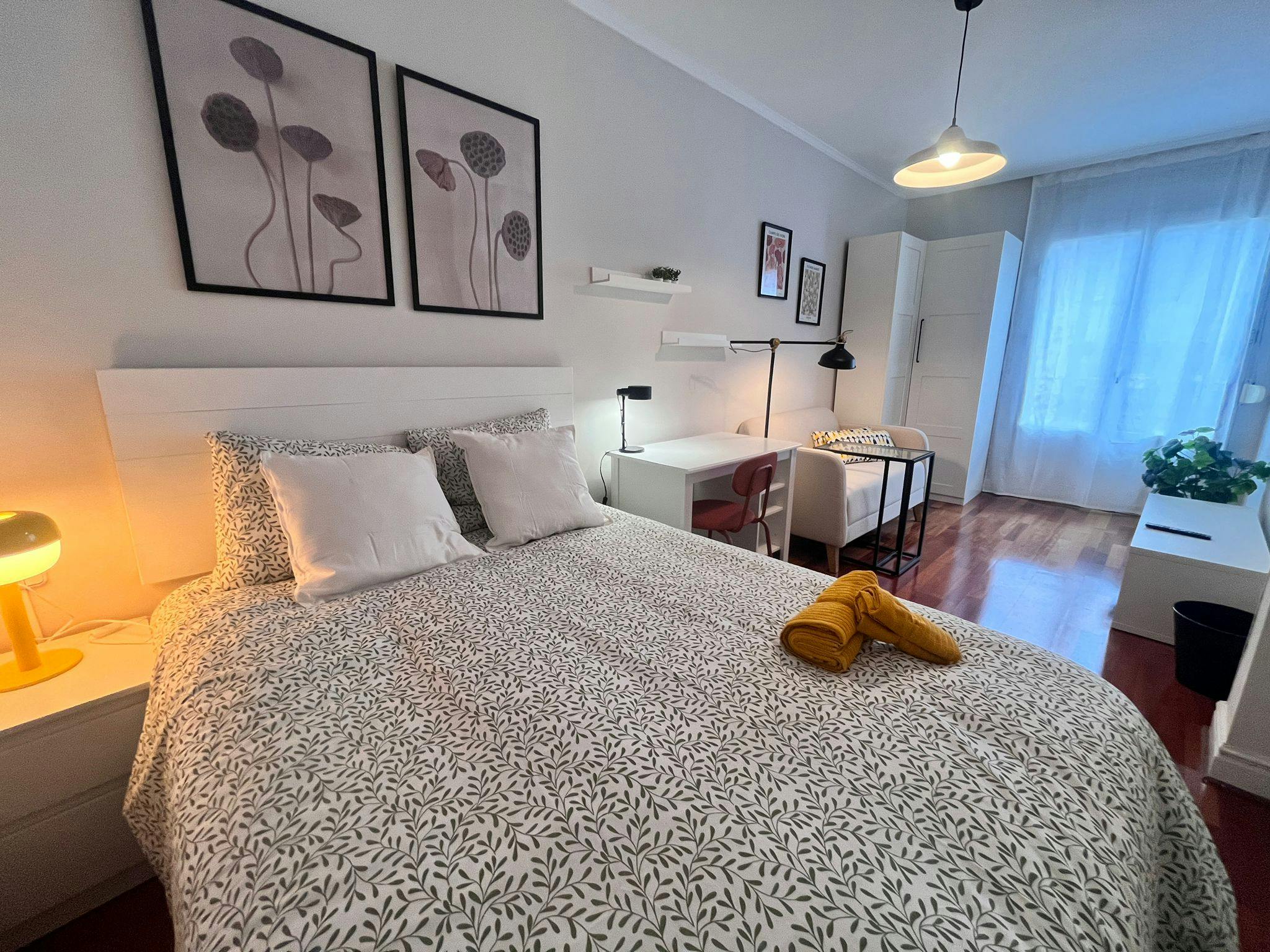 Se alquila preciosa habitación junto a la estación de Abando, en pleno centro de la ciudad de Bilbao. Esta habitación en piso compartido ofrece a su huésped todo lo necesario para vivir cómodamente en una de las zonas más dinámicas y atractivas de la ciudad. El piso cuenta con 4 habitaciones y un ambiente muy tranquilo de gente joven y trabajadora. Cercanía a metro, estación de autobuses, supermercados y todo tipo de servicios. Características de la habitación: Gran tamaño Muy luminosa y exterior Smart TV 42′′ y conexión a internet Fibra Armario, cómoda, escritorio y zona de lectura Balcón Zona de salón con chaise Longue El precio incluye: – Gastos (agua, luz y gas) – Ropa de cama – Juego de toallas – Servicio semanal de limpieza de zonas comunes Contactad para concertar visita sin compromiso. Se pide contrato laboral o acreditación de solvencia económica...