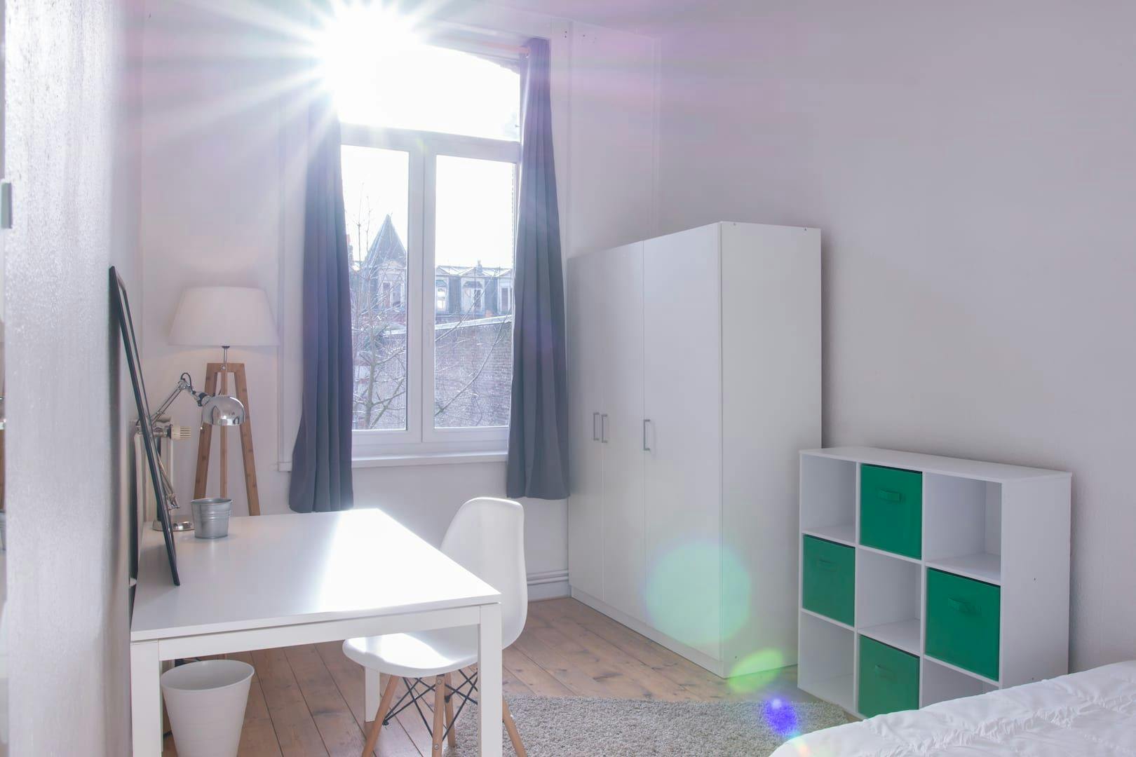Furnished flat share ! All our flats are located in the city centre and close to all amenities and public transport (Metro, Tramway and Bus). This lovely private bedroom in a fully equipped, furnished and all-inclusive flatshare in Lille is a mix of comfort and design. It has got household furnishings, including a bed with pillows and duvet What is missing is your things to feel at home! The room can be locked if you need intimacy. All our rooms are fully furnished (bed, desk, wardrobe, duvet, pillows...). The flatshare is located in the "Masséna Solférino" neighborhood, in the heart of Lille. Plenty of shops, restaurants, public transports can be found close by. The apartment is on floor #2 . It is ready-to-live-in and is composed of a complete kitchen with fridge, crockery, pans, kettle, microwave, kitchen ustensils, toaster... It also has an ironing board, a washing machine, an iron, a clothes rack. Additionally, you will find cleaning items in the flatshare: dustpan and brush, mop and bucket, bagless hoover, broom... Every furnished flatshare includes all expenses: water, condominium fees, unlimited wi-fi, housing insurance, electricity, household waste tax. All our flats are fully equipped (washing machine, dishes, decoration...) by our teams, who also take care of the technical and material maintenance. Masséna-Solférino, situated between rue Gambetta and rue Nationale, is a bustling neighbourhood in the heart of the city. With its dozens of bars and nightbclubs, it’s no wonder that it’s Lille’s favourite party spot! Here, in a colourful atmosphere you can found this superb bedroom in a ready-to-live-in flatshare. Every weekend the place is buzzing with young Lillois and the festivities often run late into the night. There are numerous take-away restuarants for those feeling peckish after a long night of dancing, and every month a new concept arrives to shake up the many existing restaurants. Minimum stay : 1 mois Apartment eligible for CAF up to 258€ / month. The CAF for Caisse d'allocations familiales is a free public service eligible for all, including foreigners and can help you financially to pay part of your housing according to your situation whether you are French or foreign. To find out the potential amount of your assistance, go to the CAF website and complete the online APL (housing assistance) estimate. Service fee : from 290€ The service fee covers the writing of the lease but also the assistance throughout your stay. The service fee covers the repair and maintenance of the equipment as well as access to our ultra-reactive support in case of need for intervention in your accommodation. Deposit : 520...