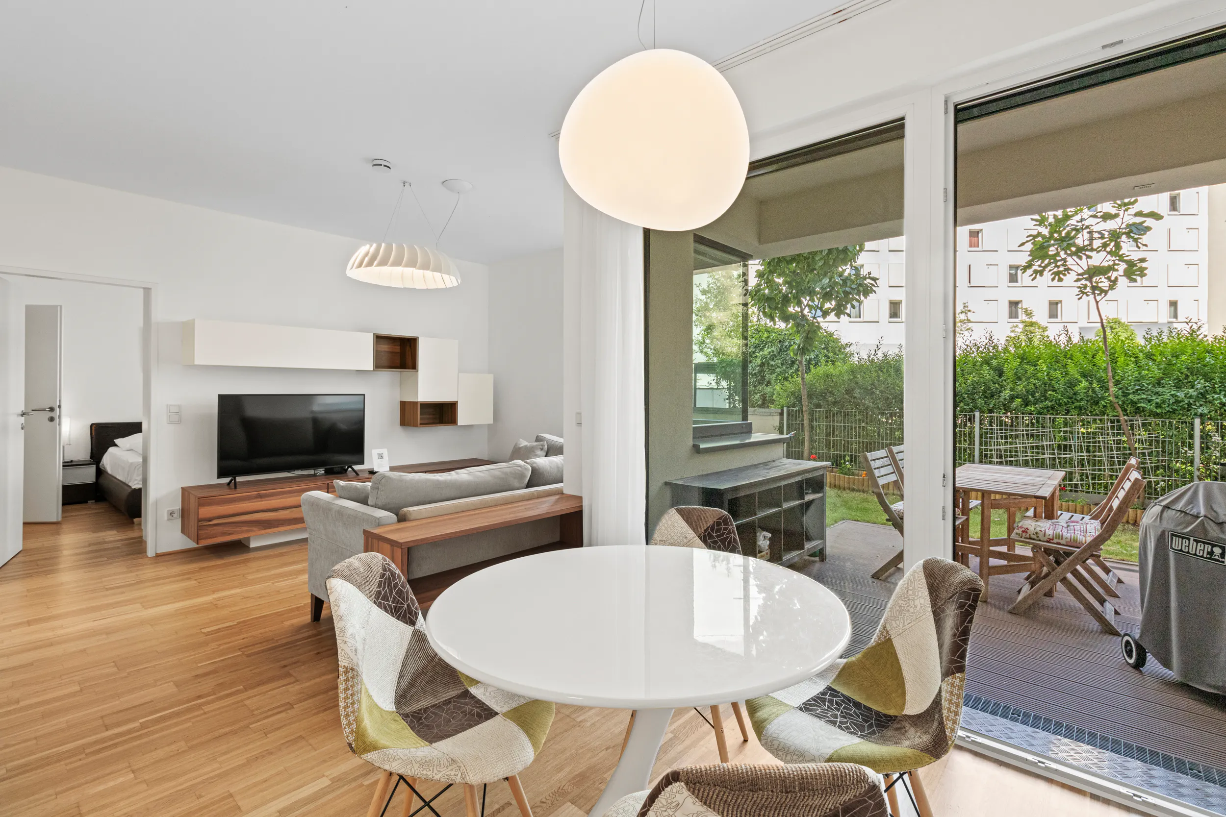 3D-Tour of that apartment: https://my.matterport.com/show/?m=4V76QUkD4Vd EN: The new, modernly furnished apartment (with AC) near the main train station is located on the ground floor facing the inner courtyard. Completely shielded from street noise, it presents itself as an oasis of calm in the city. It has approximately 56m2 of living space and an approximately 36m2 private garden. It consists of an anteroom, bathroom with walk-in shower, separate toilet, storage room, kitchen-diner, bedroom and private garden. Fully and modernly furnished with custom-made carpenter furniture: fitted kitchen (Siemens appliances) including kitchen utensils and dishes, washing machine in the bathroom, flat-screen TV, high-speed internet. All daily amenities such as a large supermarket and shopping center with a wide range of restaurants are in the immediate vicinity in the BahnhofCity main train station. Just a few minutes' walk away, the Schweizergarten and the Helmut Zilk Park invite you to stroll and linger. A cycle route leads from the building directly to the center of Vienna within 10 minutes. The main train station is also just a few minutes' walk away. The U1 subway line, express trains, tram lines 18, O, D, bus lines 13A, 69A and regional bus lines run there. Vienna Airport can be reached from the main train station by tr(hidden)) in around 15 minutes or by bus (Vienna Airport Lines). The nearby Landstraßer Gürtel junction provides direct access to the higher-level road network (A23). The price stated above is for 1 month (without parking). Energy costs (grouped under electricity costs) up to the specified amount are NOT included in the monthly basic rent. If the apartment is rented by more than 1 person, an addtional price of 169 EUR per month and person will be charged. A one-time final cleaning fee is to be charged. ___ DE: Das neuwertige, modern eingerichtete Apartment nähe Hauptbahnhof befindet sich im Erdgeschoss mit Innenhof Ausrichtung. Dadurch ist es vom Straßenlärm komplett abgeschirmt und präsentiert sich als Ruheoase in der Stadt. Es verfügt über ca. 56m2 Wohnfläche und einen ca. 36m2 großen Eigengarten. Es besteht aus Vorzimmer, Badezimmer mit Walk-in Dusche, separatem WC, Abstellraum, Wohnküche, Schlafzimmer und Eigengarten. Komplett und modern eingerichtet mit maßgefertigten Tischlermöbeln: Einbauküche (Siemens-Geräte) inkl. Küchenutensilien und Geschirr, Waschmaschine im Badezimmer, Flat-TV, High-Speed-Internet. Alle Annehmlichkeiten des täglichen Bedarfs wie ein großer Supermarkt und Shopping Center mit breitem Gastronomieangebot befinden sich in unmittelbarer Nähe in der BahnhofCity Hauptbahnhof. Nur wenige Gehminuten entfernt laden der Schweizergarten und der Helmut-Zilk-Park zum Spazieren und Verweilen ein. Eine Radroute führt vom Gebäude innerhalb von 10 Minuten direkt ins Zentrum von Wien. Der Hauptbahnhof ist ebenso in wenigen Minuten zu Fuß erreichbar. Dort verkehren U-Bahn Linie U1, Schnellbahnen, Straßenbahn Linien 18, O, D, Bus Linien 13A, 69A sowie regionale Buslinien. Der Flughafen Wien ist vom Hauptbahnhof sowohl per Zug (ÖBB) in ca. 15min als auch per Bus (Vienna Airport Lines) erreichbar. Durch die nahegelegene Anschlussstelle Landstraßer Gürtel direkt an das höherrangige Straßennetz (A23) angeschlossen. Der oben genannte Preis bezieht sich auf 1 Monat Miete (ohne Parkplatz). Energiekosten (zusammengefasst unter Stromkosten) bis zum angegebenen Betrag sind NICHT in der monatlichen Grundmiete enthalten. Falls die Wohnung für mehr als 1 Person gemietet wird, wird pro Monat ein Aufpreis von 169 EUR pro zusätzlicher Person verrechnet. Endreinigung einmalig zu bezahlen...