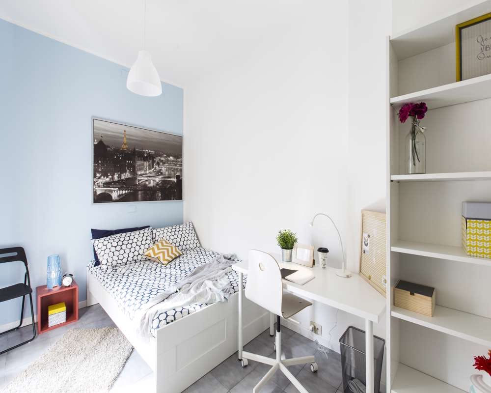 Single room in a shared apartment, composed by 8 bedrooms and 3 bathrooms. Of about 14 sqm with a one and a half bed and a work station. With concierge services, wifi, dishwasher, washing machine. Energy class: G, IPE 263,09 Kwh/Sqm year. Current tenants: 1: 31, Female, Worker 2: 25, Female, Student 3: 24, Male, Worker 4: 27, Female, Student 5: 24, Female, Student 6: 25, Female, Student Please be aware that HousingAnywhere is an online booking platform. Therefore exchanging contact details and offering viewings is not possible. If you would like to reserve this accommodation, send me a booking request or a message and please mention your age and occupation. I look forward to talking to you! CONTRACT Please, note that to all our listings we apply fortnightly contracts. This means that If you check-in during the first half of the month, you will be charged for the full month. If you check-in during the second half of the month, you will only be charged for the second half. The second half of the month starts on the 16th. If you check-out during the first half of the month, you will only pay until the 15th of that month. If you check-out during the second half of the month, you will be charged the full month....