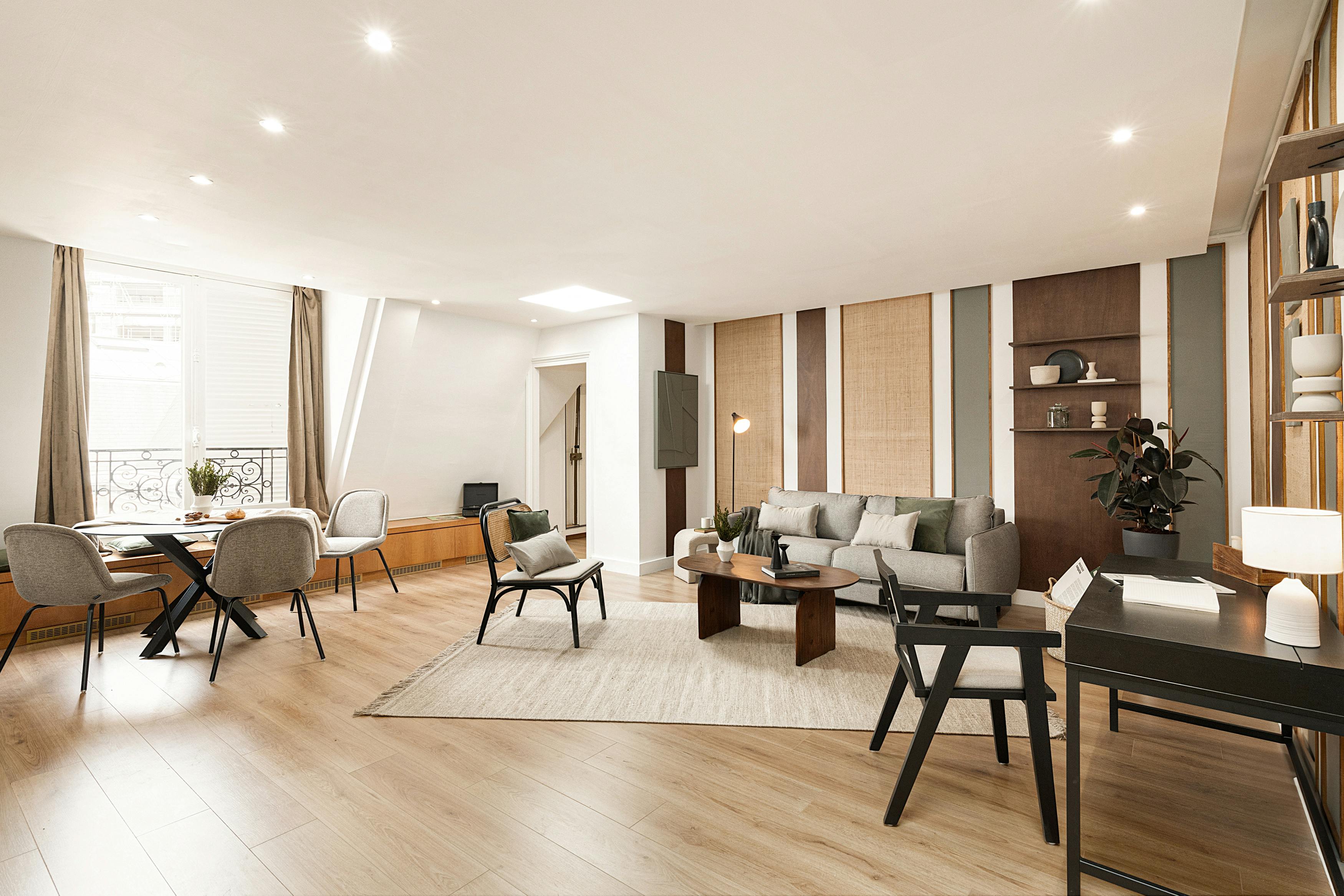 Magnifique appartement rénové et meublé situé rue de Marignan, dans le quartier des Champs-Élysées, dans le 8e arrondissement. Il est situé au 5ème étage avec ascenseur, à proximité des stations Franklin D. Roosevelt, Alma-Marceau et George V. Les Galeries Lafayette Champs-Élysées, la Galerie Dior et le Musée Yves Saint Laurent se trouvent à proximité. L'appartement se compose d'une chambre avec un lit double, d'un salon, d'une cuisine, d'une salle de bains et de toilettes séparées avec lavabo. Le lit est équipé de draps doux, idéaux pour une bonne nuit de repos. La cuisine est entièrement équipée avec les derniers appareils et ustensiles de cuisine. L'appartement dispose d'une salle de bains équipée d'une douche complète et de serviettes. L'appartement est également équipé d'une connexion WiFi haut débit et d'une télévision. L'appartement dispose également d'un lave-linge et d'un lave-vaisselle pour votre confort. *Nous acceptons les animaux de compagnie, des frais peuvent être appliqués. Les clients seront informés des frais supplémentaires dans le contrat final. *Nous ne pouvons pas être tenus responsables des bruits (construction ou bruit de la rue) qui se produisent à l'extérieur de l'appartement. Nous ne pouvons pas non plus être tenus responsables des chambres sans air conditionné (toutes les chambres avec air conditionné seront explicitement expliquées dans notre description). Nous n'accepterons aucune annulation de réservation ou demande de remboursement liée à ces deux problèmes. *Notre équipe de conception interne sélectionne de manière experte tous les meubles et décors d'appartement afin de garantir le plus haut niveau de qualité et de confort. Dans le cadre de l'entretien régulier des logements, de l'amélioration du design et de la mise en scène des photos, il peut y avoir de légères différences entre le mobilier présenté sur les photos et celui que vous trouverez dans l'appartement. Si vous avez des questions ou des doutes, adressez-vous à un agent de vente...