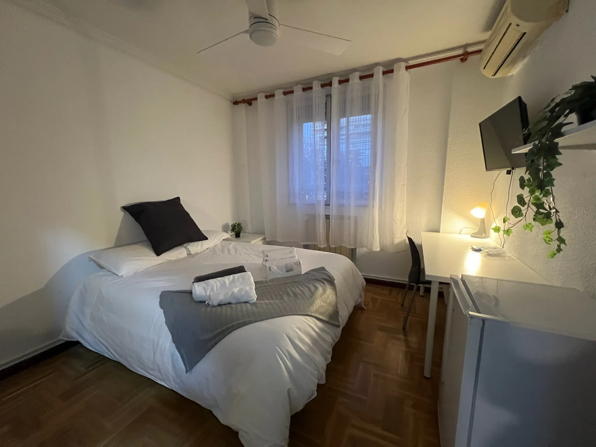💢 Welcome to your new home! 💢 This spacious and modern 6-bedroom apartment on Calle General Perón, Madrid, offers a comfortable and convenient living experience. Your bright and cozy private room comes fully furnished with a comfortable bed, study desk, chair, and wardrobe, all bathed in ample natural light. The apartment features a fully equipped kitchen and two contemporary shared bathrooms. Enjoy the convenience of a washing machine and other essential household appliances. Weekly cleaning for common areas is included, and an optional room cleaning service is available for €25 per service. All utilities (electricity, water, gas, and internet) are included up to a maximum limit specified in the contract. 📍Situated in a vibrant neighborhood with easy access to public transportation, the apartment is close to shops, cafes, restaurants, and parks. Perfect for students and young professionals, this apartment provides a hassle-free living experience in the heart of Madrid....